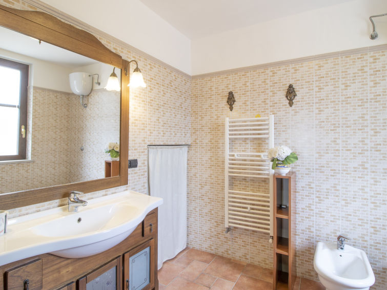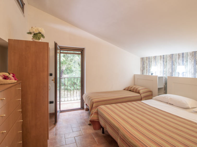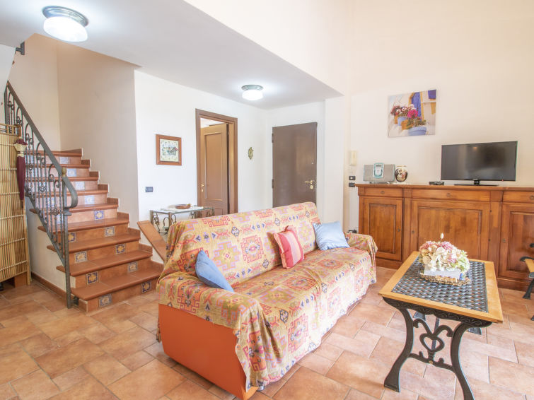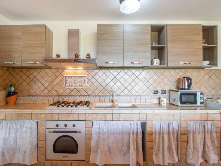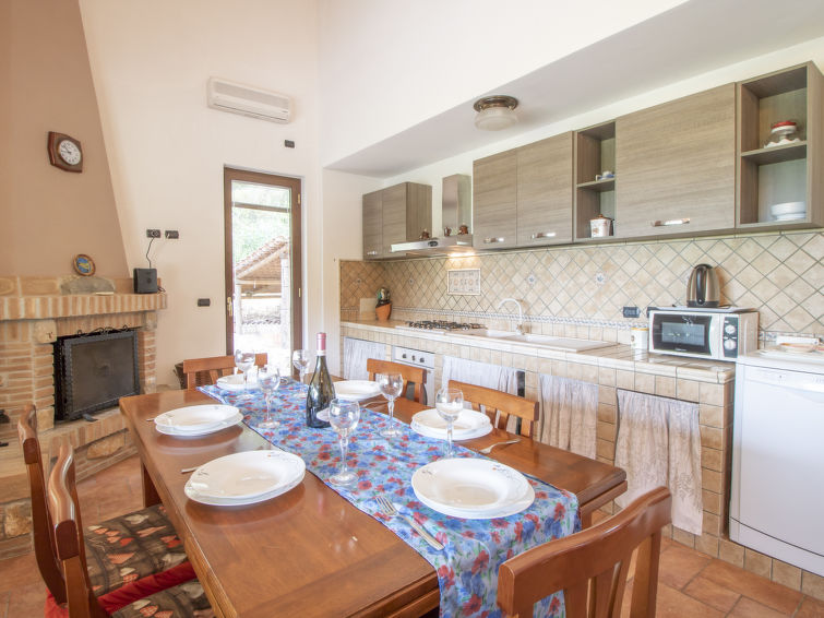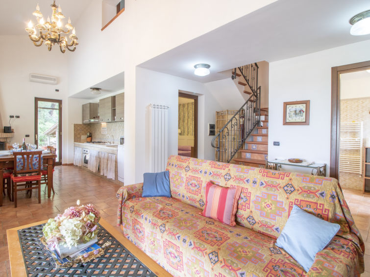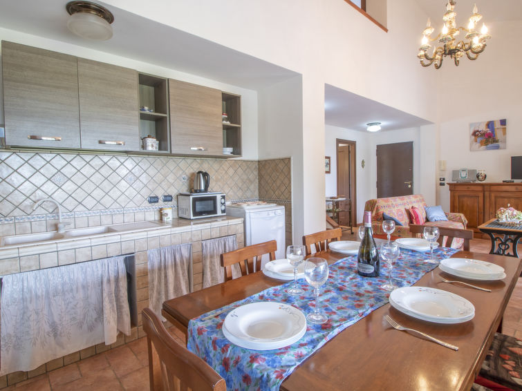 4 rom villa 115 m2 på 2 etasjer. Praktiskt og komfortabelt møbler: stor stue/spisestue med, åpen peis, kjøkkenhjørne og satelit-TV (flatskjerms TV), air-conditioning. Utgang til hagen, til loggiaen. 1 dobblet rom. Kjøkkenkrok (4 kokeplater, stekeovn, oppvaskmaskin, brødrister, vannkoker, mikrobølgeovn, frys). Dusj/bidé/WC. øverste etasje: 1 dobblet rom. 1 rom med 1 seng og 1 dobbeltseng. Dusj/bidé/WC. Fasiliteter: vaskemaskin, myggnett, hårføner. Internett (trådløs LAN [WLAN]). 1 lite kjæledyr / liten hund tillatt.