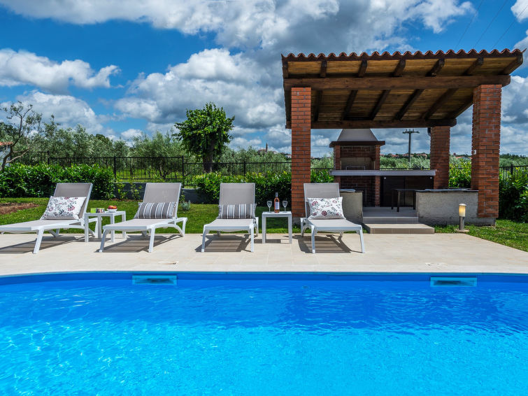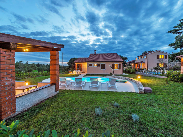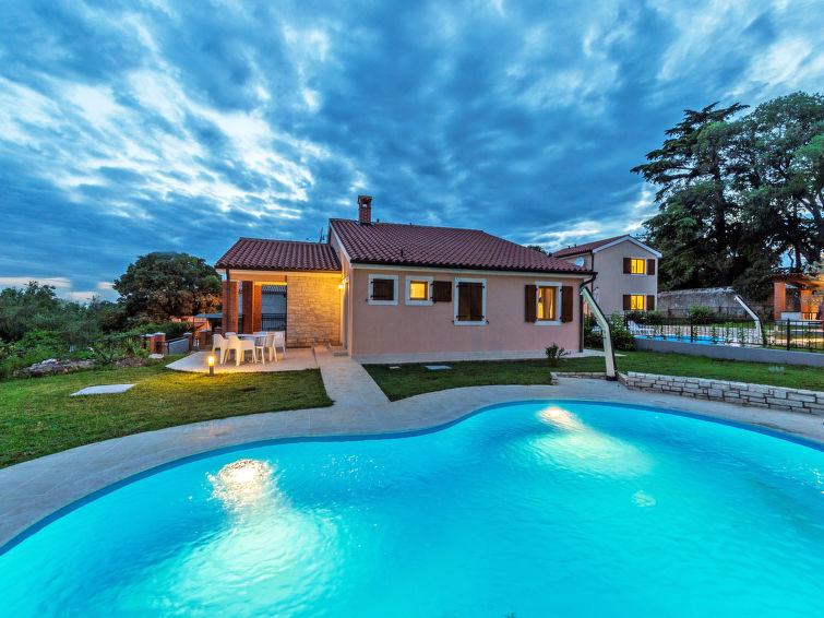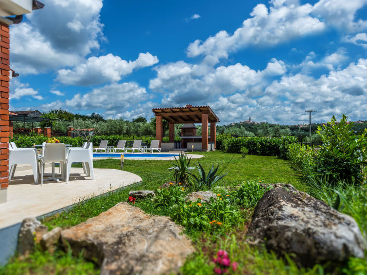 Višnjan 10 km fra Poreč: Enmannsbolig "Dalia". I det lille tettstedet Kolumbera 1 km fra sentrum av Višnjan, i en solrikt posisjon, 8 km fra sjøen. Privat: tomt 800 m2 (inngjerdet), hage med plen, svømmebasseng (28 m2, dybde 140 cm, 22.04.-30.09.). Formet basseng. Utendørs dusj, terrasse (15 m2), hagemøbler, grill. I hbrukt: internetilkobbling, vaskemaskin. Parkering ved hbrukt på tomten. Butikk 1 km, restaurant 500 m, småstenstrand 8 km, strand ved klipper 8 km. Tennis 13 km, rideskole 10 km, turstier fra hbrukt 100 m, sykkelvei 150 m.