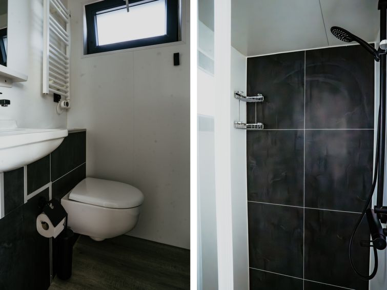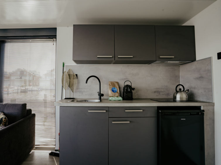 "Havenlodge", 3 rom hus 26 m2. Komfortabelt møbler: stue/spisestue med, spisebord og flatskjerms TV. Utgang til terrassen. 1 dobblet rom med 2 senger. Utgang til terrassen. 1 dobblet rom med, 1 x 2 køysenger. Åpent kjøkken (4 kokeplater, elektrisk kaffemaskin). Dusj/WC. Airconditioning. Terrasse. Terrassemøbler. Panoramautsikt av vannet. Fasiliteter: Internett (trådløs LAN [WLAN], gratis). Vennligst merk: røykfritt hus. Max kjæledyr/små hunder tillatt 2 kjæledyr/små hunder tillatt. Røykvarsler.