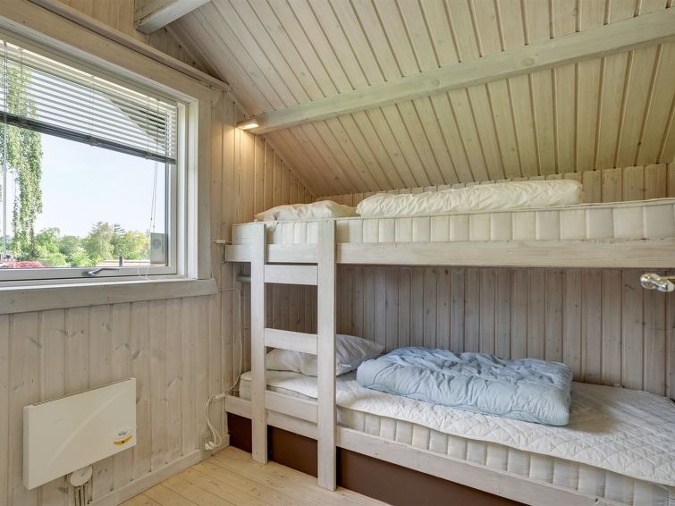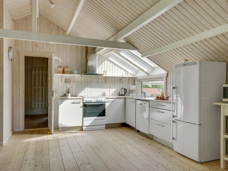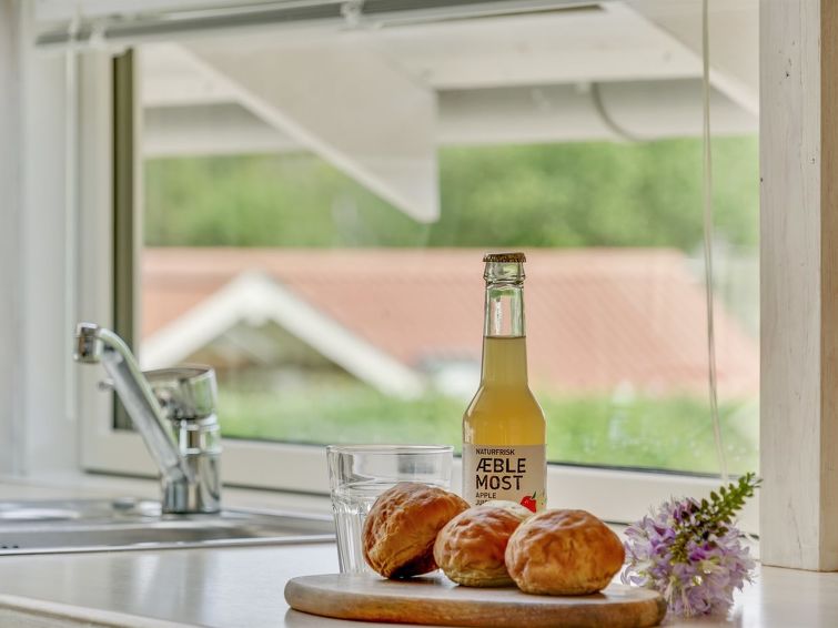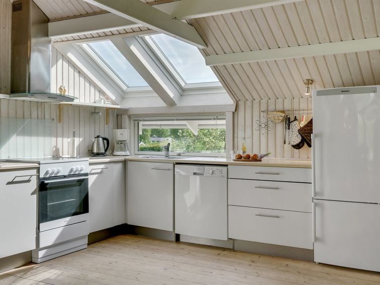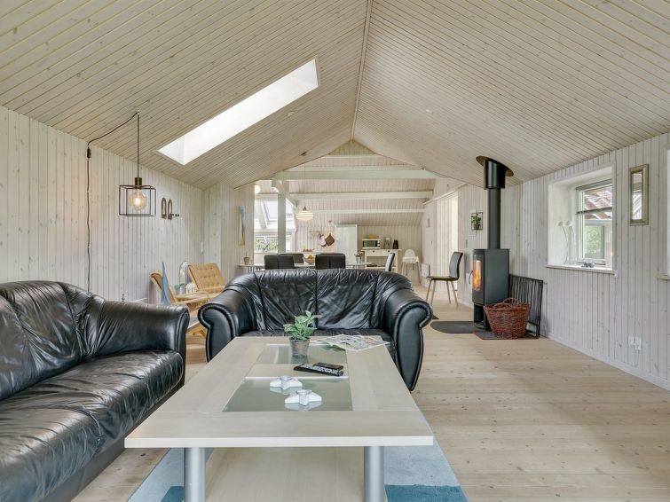 "Dea" - 850m from the sea in SE Jutland", 3 rom hus 98 m2. Passer for 6 voksne + 1 barn. Stue med, TV, CD-spiller, stereoanlegg og DVD. 1 rom med, 1 dobbeltseng. 1 rom med, 1 x 2 køysenger. 1 rom med, 1 x 2 køysenger. Kjøkken (4 kokeplater, stekeovn, oppvaskmaskin, mikrobølgeovn, frys). Dusj/WC. Terrasse 10 m2, dekt. Fasiliteter: høy barnestol barneseng (ekstra). Internett (trådløs LAN [WLAN]). Max kjæledyr / hund tillatt 1 kjæledyr / hund tillatt.