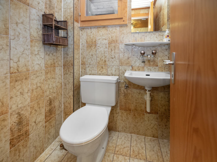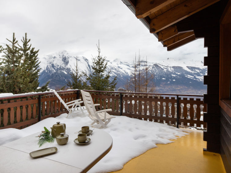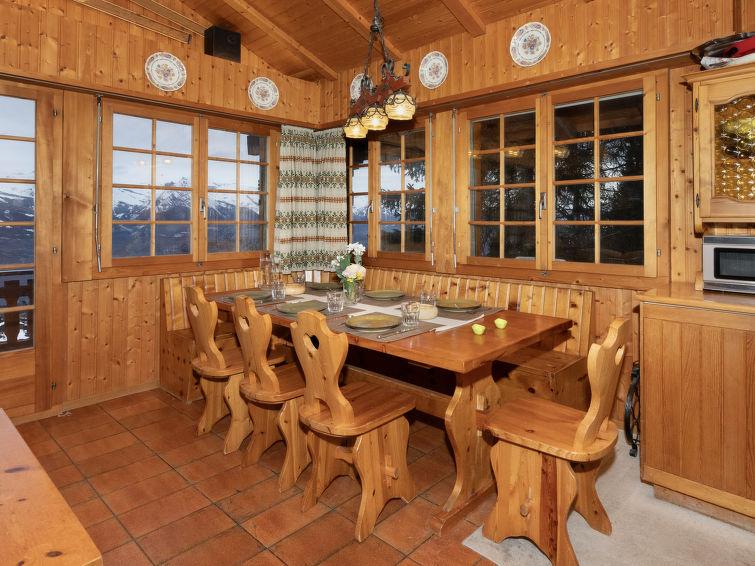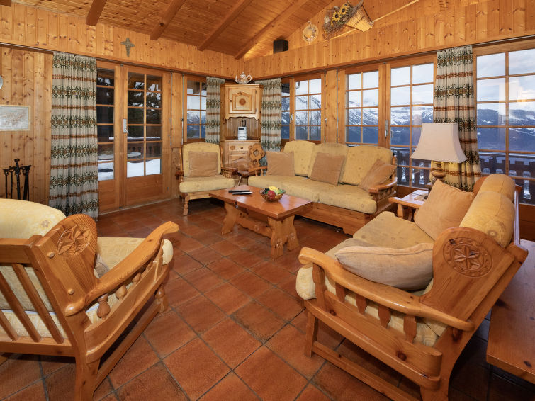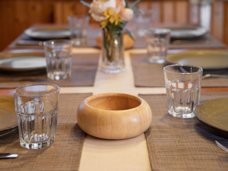 "Dejo A Dzeu", 4 rom hytte 116 m2 på 2 etasjer. Meget enkelt møbler: stue/spisestue med, åpen peis, kabel-TV og stereoanlegg. Åpent kjøkken (4 kokeplater, stekeovn, oppvaskmaskin, brødrister, vannkoker, mikrobølgeovn, raclettegrill (ost)). Sep. WC. I underetasje: 2 rom, hvert rom med 2 senger. 1 litet rom med 2 senger og 1 x 2 køysenger. Bad/bidé/WC, dusj. Balkong, beliggenhet mot nord, terrasse, beliggenhet mot sør-vest. Terrassemøbler, grill (flyttbar). Meget vakker utsikt av fjellene og dalen. Fasiliteter: vaskemaskin, tørketrommel. Internett (trådløs LAN [WLAN], gratis). Parkeringsplass (2 Biler). Vennligst merk: røykfri bolig.