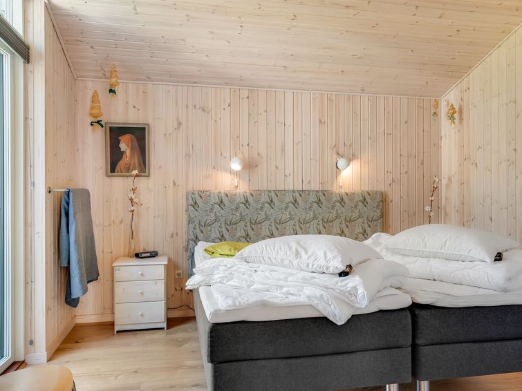 Enmannsbolig, bygget i 1987. 200 m fra sjøen. Privat: tomt 1'058 m2, velholdt hage. Terrasse (40 m2), lekeplass (huske). I huset: vaskemaskin, tørketrommel. Parkering ved hbrukt. Daglivarehandel 2 km. Golfbane 500 m. Eieren godtar ikke noen ungdomsgrupper.