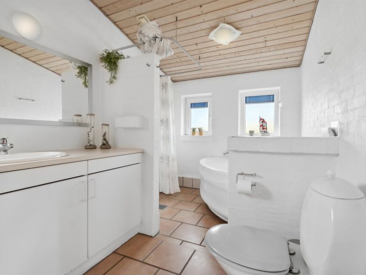 "Dennik" - 100m from the sea in NW Jutland", 3 rom hus 100 m2. Passer for 6 voksne + 1 barn. Stue med, TV. 1 rom med 2 senger. 1 rom med, 1 dobbeltseng. 1 rom med, 1 dobbeltseng. Kjøkken (stekeovn, oppvaskmaskin, 4 induksjonskomfyr, mikrobølgeovn, frys). 2 dusjer/WC, boblebad. Fasiliteter: høy barnestol barneseng (ekstra). Internett (trådløs LAN [WLAN]). Vennligst merk: røykfri bolig.