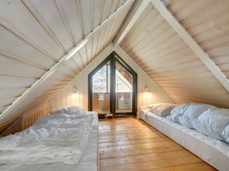 Enmannsbolig, bygget i 1969. 3.5 km fra sjøen. Privat: uberørt tomt 3'500 m2. Lekeplass (huske). I huset: vaskemaskin. Parkering ved hbrukt. Bilporten. Daglivarehandel 2.5 km. Eieren godtar ikke noen ungdomsgrupper.