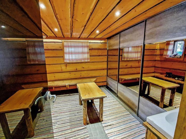 Lakeside sauna 40 m, wood heated sauna stove, hearth room and covered porch. Water pipe (shower in the sauna), electric heating and electric lighting. Own boat launching and campfire site on the shore.
