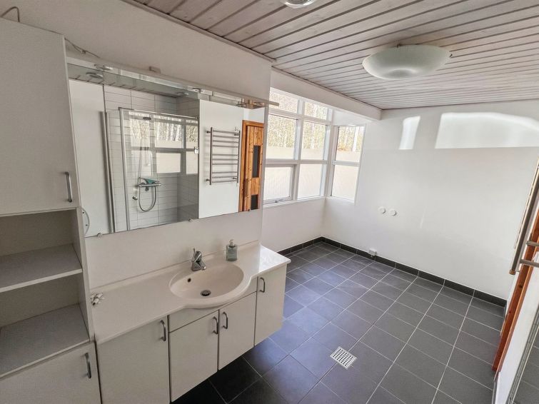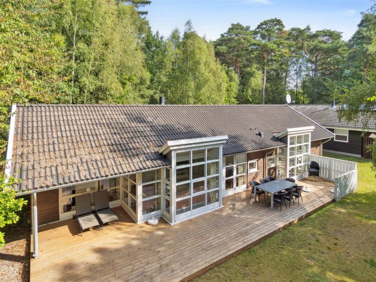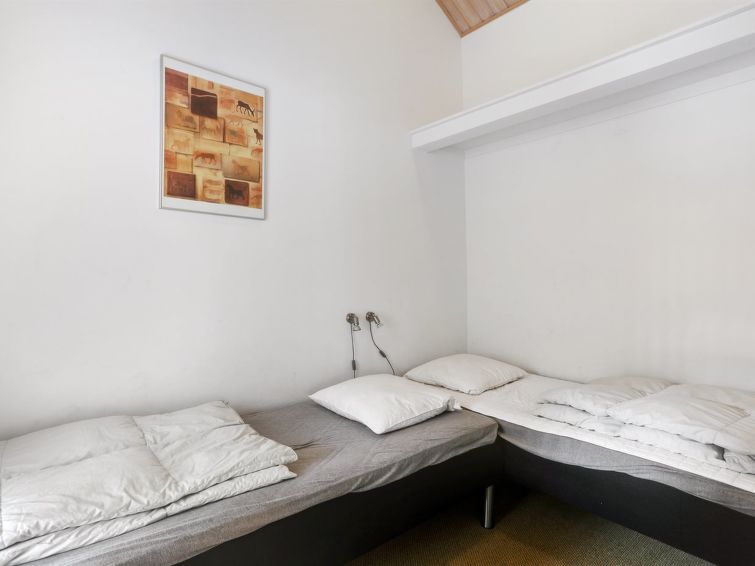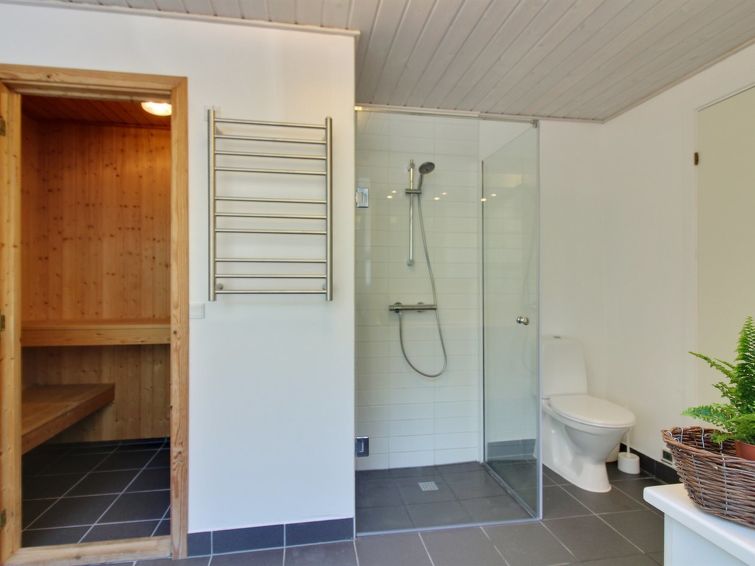Enmannsbolig, bygget i 2002. 600 m fra sjøen. Privat: uberørt tomt 1'250 m2. Terrasse (30 m2). I huset: badstu, vaskemaskin. Parkering ved hbrukt. El-ladestasjon. Daglivarehandel 3 km. Golfbane 7.5 km. Eieren godtar ikke noen ungdomsgrupper.