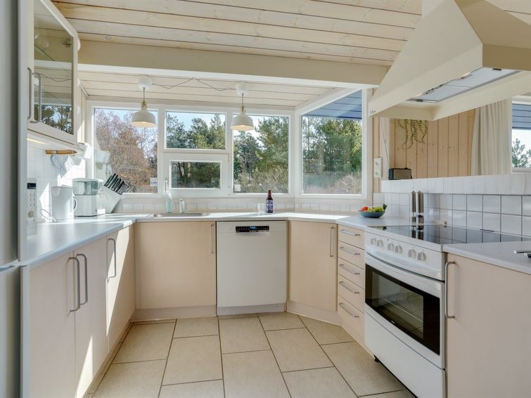 "Dorti" - 3km from the sea in Western Jutland", 3 rom hus 108 m2. Passer for 6 voksne. Stue med, TV, radio og DVD. 1 rom med, 1 dobbeltseng. 1 rom med, 1 dobbeltseng. 1 rom med 2 senger. Kjøkken (stekeovn, oppvaskmaskin, 4 keramiske kokeplater, mikrobølgeovn, frys). 2 dusjer/WC, boblebad. Terrasse 16 m2, dekt. Fasiliteter: Internett (trådløs LAN [WLAN]). Vennligst merk: røykfri bolig.
