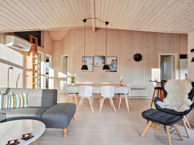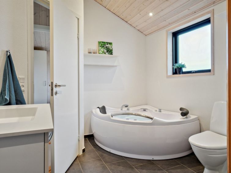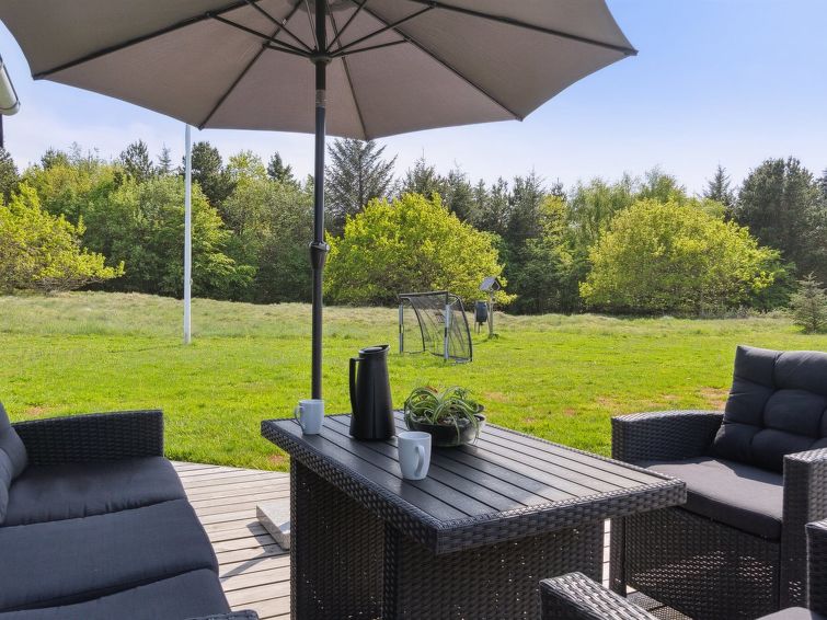 "Dyke" - 1.5km from the sea in NW Jutland", 4 rom hus 100 m2. Passer for 8 voksne + 1 barn. Stue med, TV og DVD. 1 rom med, 1 dobbeltseng. 1 rom med, 1 dobbeltseng. 1 rom med 2 senger. 1 rom med, 1 dobbeltseng. Kjøkken (stekeovn, oppvaskmaskin, 4 induksjonskomfyr, mikrobølgeovn, frys). 2 dusjer/WC, boblebad. Terrasse 10 m2, dekt. Fasiliteter: høy barnestol barneseng (ekstra). Internett (trådløs LAN [WLAN]). Vennligst merk: røykfri bolig.