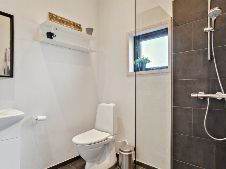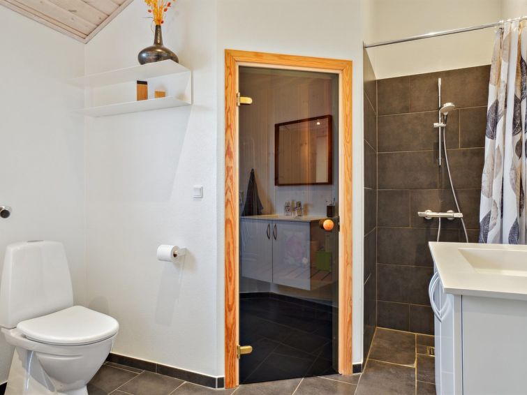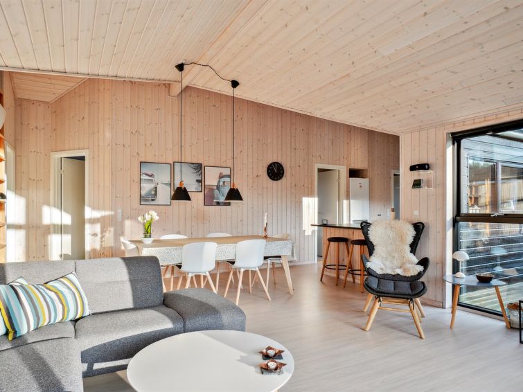 Enmannsbolig, bygget i 2018. 1.5 km fra sjøen. Privat: uberørt tomt 1'300 m2. Terrasse (90 m2), grill. I huset: badstu, vaskemaskin, tørketrommel. Parkering ved hbrukt. Daglivarehandel 1.8 km. Golfbane 15 km. Eieren godtar ikke noen ungdomsgrupper.