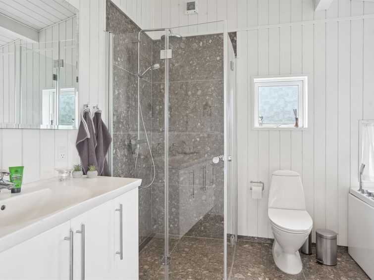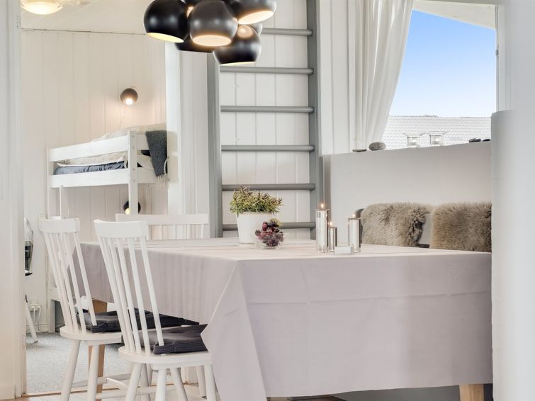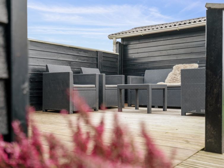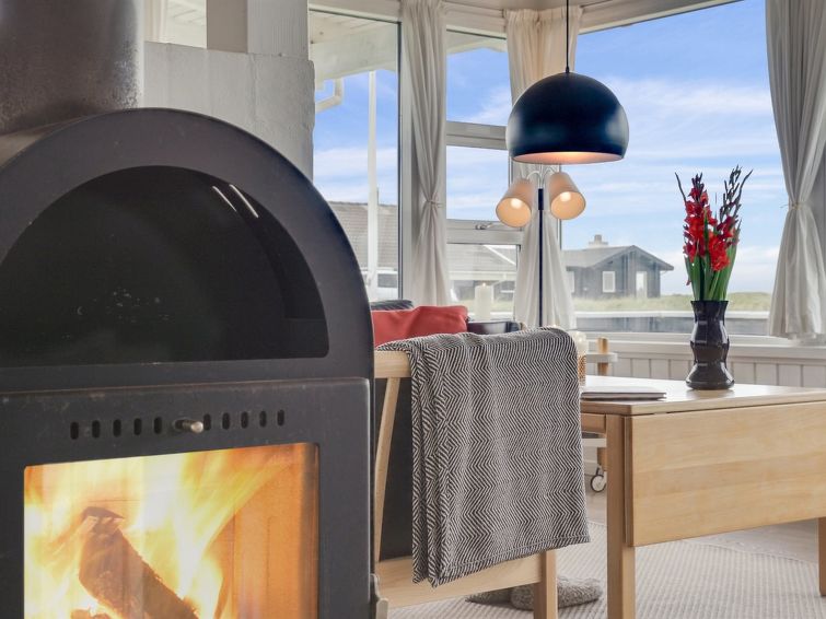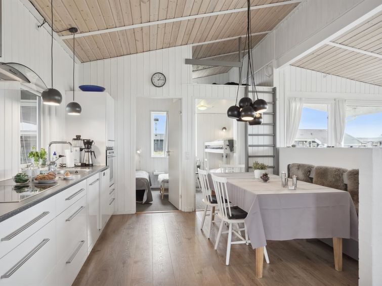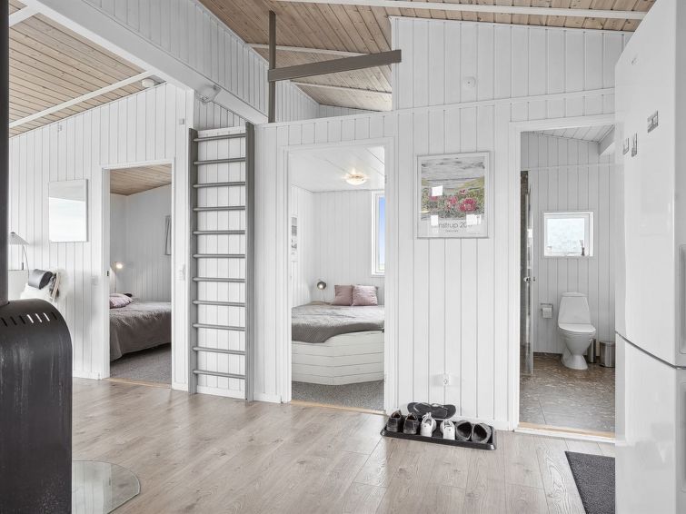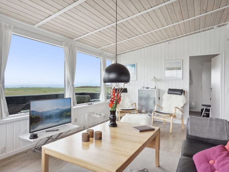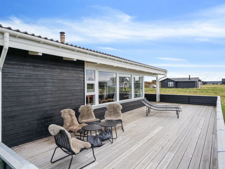 "Dyri" - 75m from the sea in NW Jutland", 4 rom hus 94 m2. Passer for 8 voksne + 1 barn. Stue med, TV og radio. 1 rom med, 1 dobbeltseng. 1 rom med, 1 dobbeltseng. 1 rom med, 1 dobbeltseng. 1 rom med, 1 x 2 køysenger. Kjøkken (stekeovn, oppvaskmaskin, 4 induksjonskomfyr, mikrobølgeovn, frys). Dusj/WC, boblebad. Terrasse 39 m2, dekt. Utsikt av havet. Fasiliteter: høy barnestol barneseng (ekstra). Internett (trådløs LAN [WLAN]). Vennligst merk: røykfri bolig. Max kjæledyr / hund tillatt 1 kjæledyr / hund tillatt.