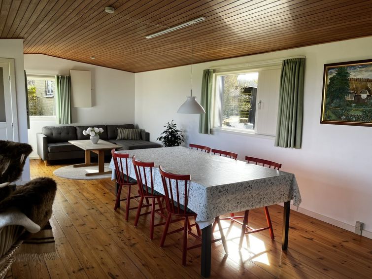 Enmannsbolig, bygget i 1968. 250 m fra sjøen. Privat: tomt 800 m2, velholdt hage. Terrasse (25 m2), lekeplass (huske). I huset: vaskemaskin. Parkering ved hbrukt. El-ladestasjon. Daglivarehandel 2 km. Eieren godtar ikke noen ungdomsgrupper.