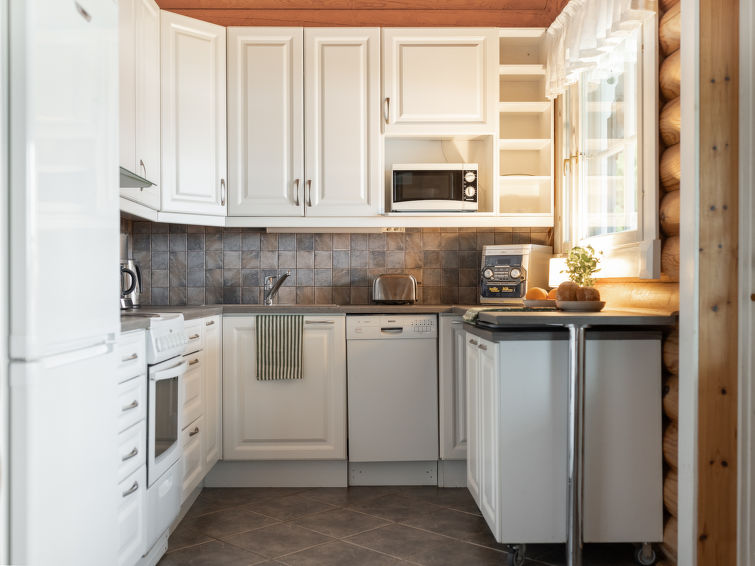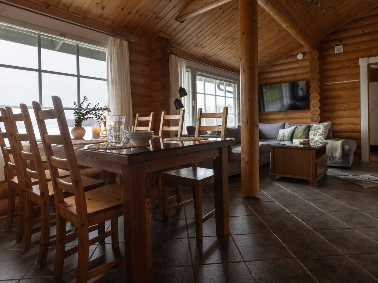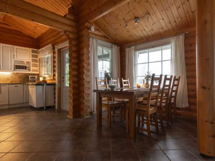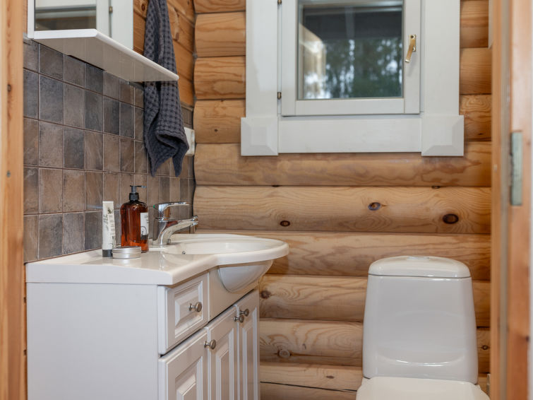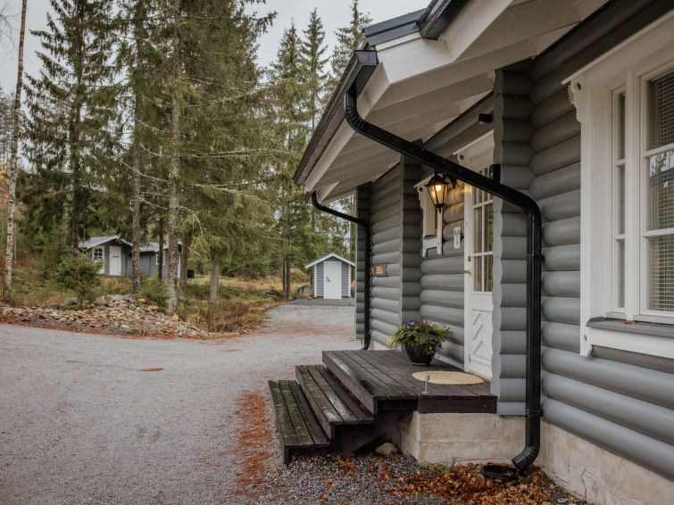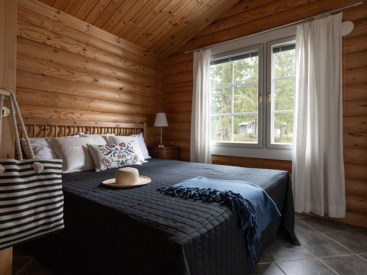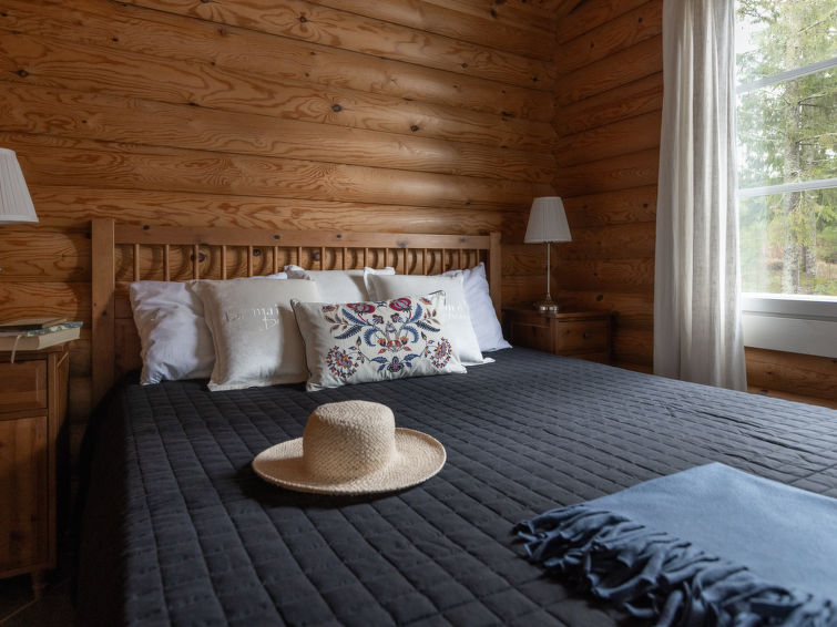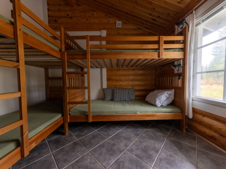 Log cottage 2005, kitchen, living room alternatively 2 extra beds, bedroom 2 bunks, bedroom double bed, dressing room, washroom, sauna (elec. stove), open porch.