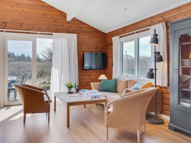 "Efra" - 400m from the sea in NW Jutland", 2 rom hus 72 m2. Passer for 4 voksne. Stue med, TV. 1 rom med, 1 dobbeltseng. 1 rom med, 1 dobbeltseng. 1 rom med, 1 dobbeltseng. Kjøkken (stekeovn, oppvaskmaskin, 4 induksjonskomfyr, frys). Dusj/WC. Utsikt av havet. Fasiliteter: Internett (trådløs LAN [WLAN]).