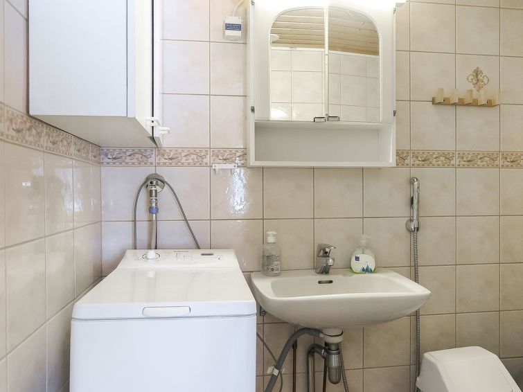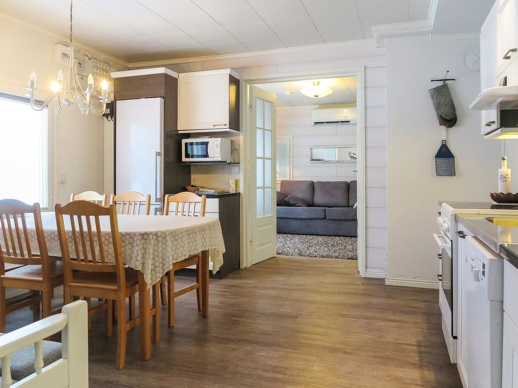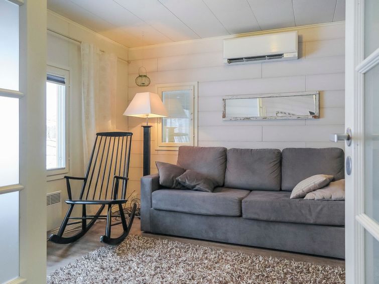 Wooden cottage, built in 1973, renovated and renewed in 2012. There is spreadable sofa in living room, double bed in bedroom (beds can be separated) and spreadable sofa in kitchen. Cabin has also sauna, washroom and glazed terrace. Entrance to the sauna and washroom from glazed terrace.