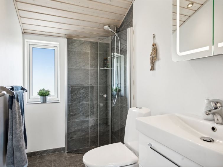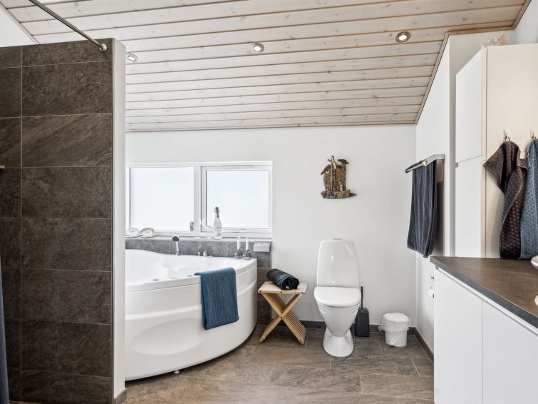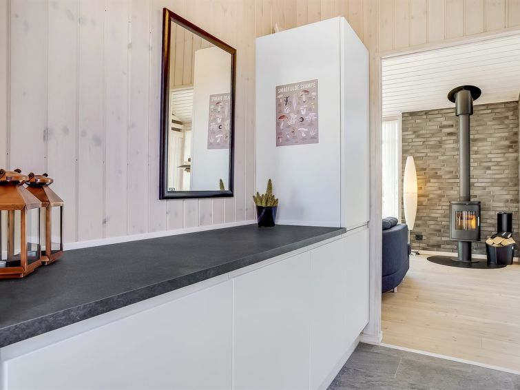 Enmannsbolig, bygget i 2017. 300 m fra sjøen. Privat: tomt 3'600 m2. Utendørs dusj, terrasse (100 m2), grill. I huset: badstu, vaskemaskin. Parkering ved hbrukt. Bilporten. Daglivarehandel 1.5 km. Eieren godtar ikke noen ungdomsgrupper.