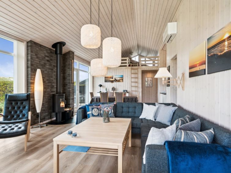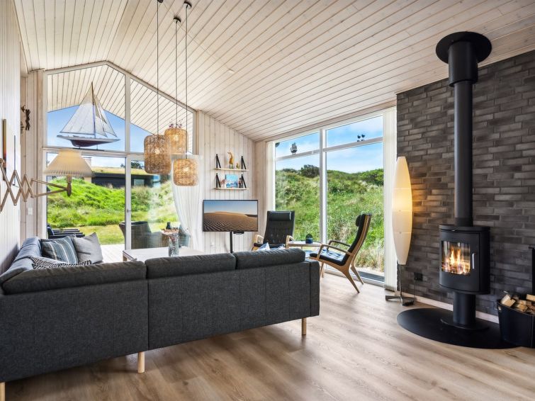 "Ejnarine" - 300m from the sea in NW Jutland", 3 rom hus 103 m2. Passer for 5 voksne. Stue med, TV og radio. 1 rom med, 1 dobbeltseng. 1 rom med, 1 dobbeltseng. 1 rom med 2 senger. Kjøkken (stekeovn, oppvaskmaskin, 4 induksjonskomfyr, mikrobølgeovn, frys). 2 dusjer/WC, boblebad. Terrasse 12 m2, dekt. Fasiliteter: Internett (trådløs LAN [WLAN]). Vennligst merk: røykfri bolig.