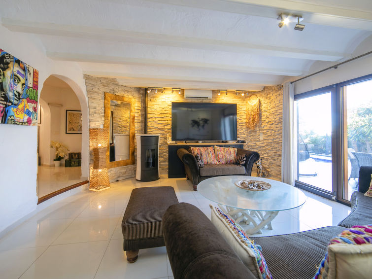 Fin, komfortabel villa "El Salvador", med 2 etasjer. 7 km fra sentrum av Moraira, 7 km fra sentrum av Calpe, i en avskildt, roligt posisjon boligområde, område med lite trafikk, 250 m fra sjøen, 250 m fra stranden. Privat: tomt (inngjerdet), vakker, velholdt hage, svømmebasseng (8 x 4 m, Sesongåpent: 01.Jan. - 31.Des.). Utendørs dusj, boblebad, bassenghus med kjøleskap og kokeplate, terrasse, grill. Daglivarehandel, supermarked 750 m, restaurant, bar, café 650 m, sandstrand "Playa la Fustera" 650 m. Sporthavn 2 km, golfbane 6 km. Attraksjoner i nærheten: Aqualandia, Mundomar, Terra Mítica, Terra Natura, Benidorm Palace (Benidorm), Les Fonts de l'Algar, Castillo de Guadalest. Eieren godtar ikke noen ungdomsgrupper.