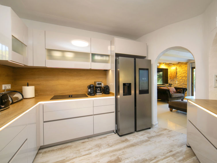 "El Salvador", 5 rom villa 301 m2 på 2 etasjer. Passer for 6 voksne + 2 barn. Romlig og lys, komfortabelt og vakkert møbler: åpen stue/spisestue med, satelit-TV, air-conditioning og varmluft oppvarming. Utgang til terrassen. 2 rom, hvert rom med, 1 dobbeltseng (1 x 180 cm, lengde 200 cm), TV, air-conditioning og varmluft oppvarming. Utgang til terrassen. Kjøkken (stekeovn, oppvaskmaskin, 4 keramiske kokeplater, brødrister, vannkoker, mikrobølgeovn, elektrisk kaffemaskin). Dusj/WC, dobbel servant. øverste etasje: 1 rom med, 1 dobbeltseng (1 x 180 cm, lengde 200 cm), TV, air-conditioning og varmluft oppvarming. Utgang til terrassen. 1 rom med, 1 sovesoffa (140 cm, lengde 190 cm), air-conditioning og varmluft oppvarming. Dusj/WC, dobbel servant. Terrassemøbler, grill, liggestoler, sitteplass. Vakker utsikt av havet. Fasiliteter: vaskemaskin, tørketrommel, høy barnestol barneseng for barn opp til 2 år, hårføner. Internett (trådløs LAN [WLAN], gratis). Garasje. Vennligst merk: velegnet for familier. Røykfritt hus. 1 lite kjæledyr / liten hund tillatt. VT-438213-A