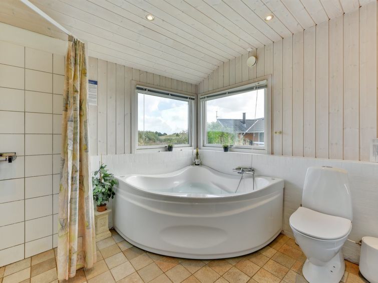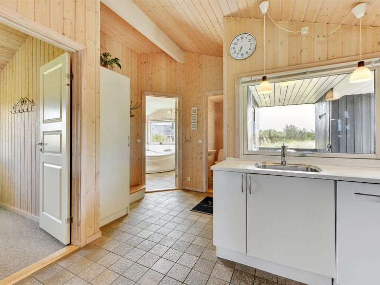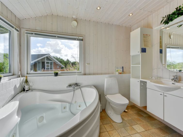 "Electra" - 500m to the inlet in Western Jutland", 3 rom hus 86 m2. Passer for 6 voksne. Stue med, TV. 1 rom med, 1 dobbeltseng. 1 rom med, 1 dobbeltseng. 1 rom med 2 senger. Kjøkken (stekeovn, oppvaskmaskin, 4 keramiske kokeplater, frys). 2 dusjer/WC, boblebad. Terrasse 8 m2, dekt. Fasiliteter: Internett (trådløs LAN [WLAN]). Vennligst merk: røykfri bolig.