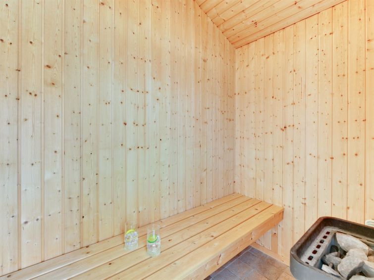 Enmannsbolig, bygget i 2003. 850 m fra sjøen. Privat: uberørt tomt 1'357 m2. Terrasse (60 m2), grill. I huset: badstu, vaskemaskin, tørketrommel. Parkering ved hbrukt. Daglivarehandel 300 m. Eieren godtar ikke noen ungdomsgrupper.