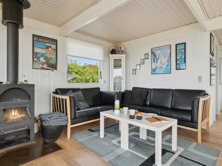 "Eliene" - 400m from the sea in Bornholm", 2 rom hus 55 m2. Passer for 5 voksne. Stue med, TV. 1 rom med, 1 dobbeltseng. 1 rom med 1 seng og 1 x 2 køysenger. Kjøkken (stekeovn, oppvaskmaskin, 4 keramiske kokeplater, mikrobølgeovn, frys). Dusj/WC. Utsikt av havet. Fasiliteter: høy barnestol barneseng (ekstra). Internett (trådløs LAN [WLAN]). Vennligst merk: røykfri bolig.
