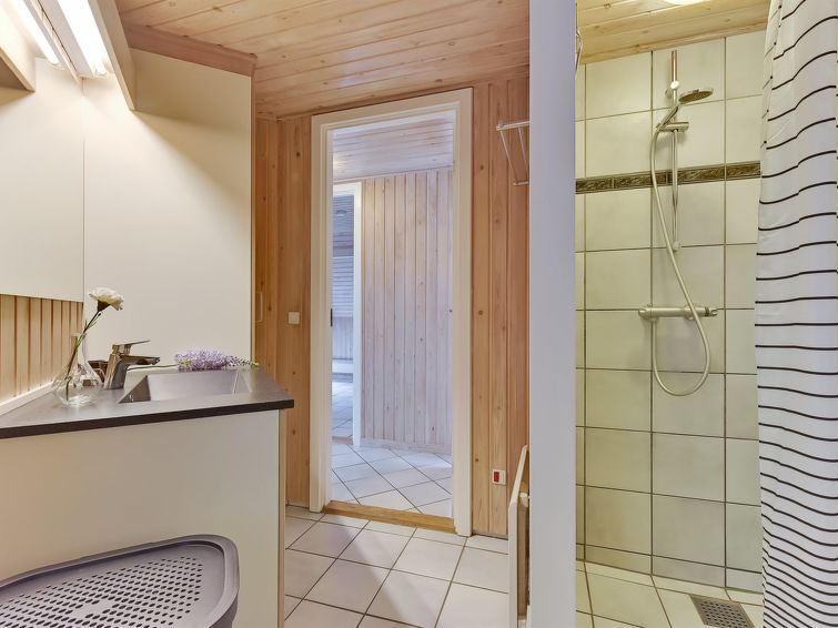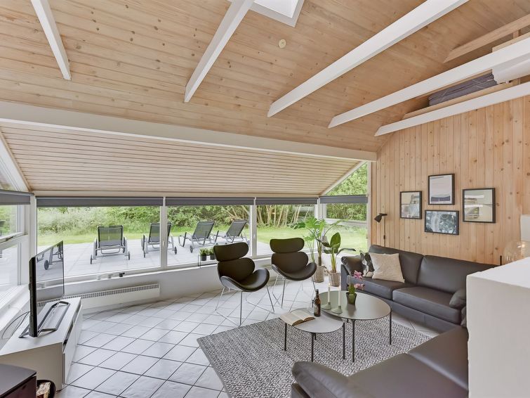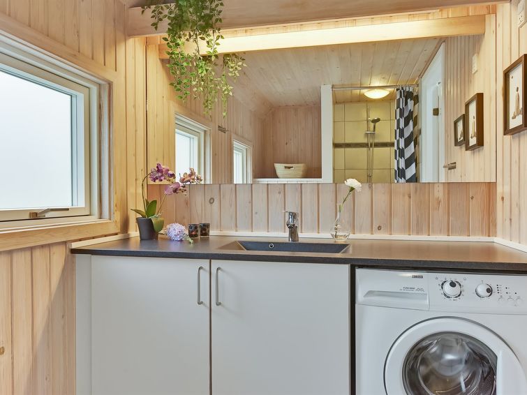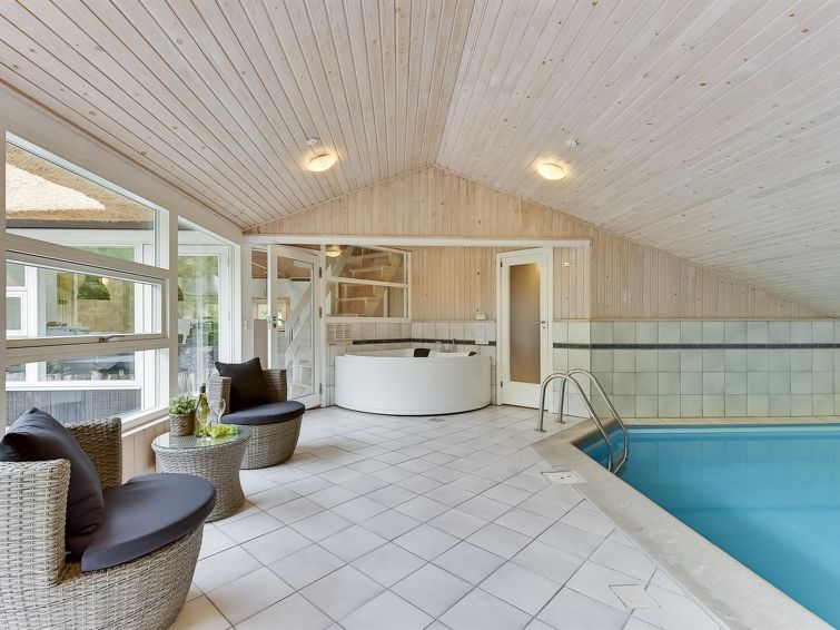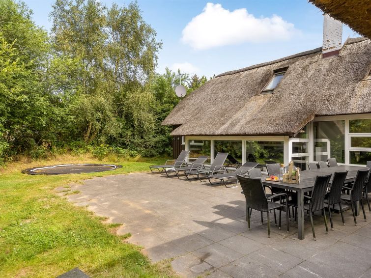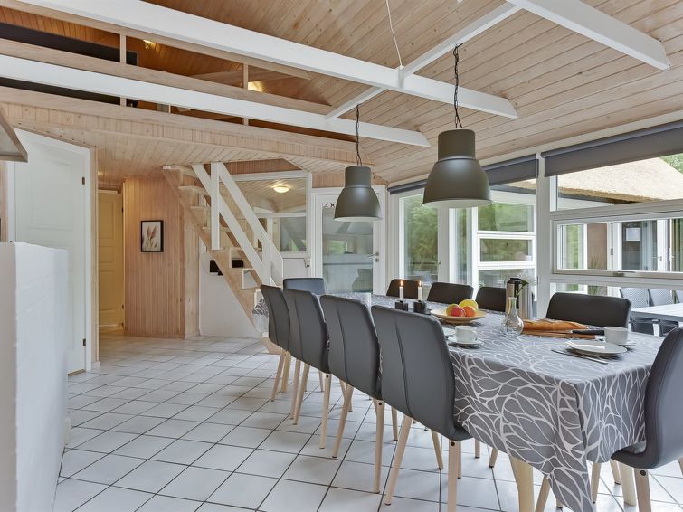 "Ellanor" - 1km from the sea in Western Jutland", 5 rom hus 240 m2. Passer for 12 voksne + 1 barn. Stue med, TV, CD-spiller, stereoanlegg og DVD. 1 rom med, 1 dobbeltseng. 1 rom med, 1 dobbeltseng. 1 rom med, 1 dobbeltseng. 1 rom med 2 senger. Kjøkken (4 kokeplater, stekeovn, oppvaskmaskin, mikrobølgeovn, frys). Dusj/WC, boblebad. øverste etasje: åpen galleri, 1 rom med, 1 dobbel sovesoffa og 1 dobbeltseng. Fasiliteter: høy barnestol barneseng (ekstra). Internett (trådløs LAN [WLAN]). Vennligst merk: røykfri bolig. Max kjæledyr/små hunder tillatt 2 kjæledyr/små hunder tillatt.