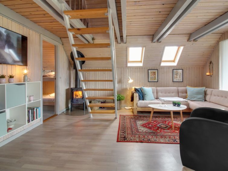 "Ellenor" - 300m to the inlet in The Liim Fiord", 3 rom hus 80 m2. Passer for 6 voksne. Stue med, TV og radio. 1 rom med, 1 dobbeltseng. 1 rom med, 1 x 2 køysenger. Kjøkken (stekeovn, oppvaskmaskin, 4 induksjonskomfyr, mikrobølgeovn, frys). Dusj/WC. øverste etasje: 1 rom med, 1 dobbeltseng. Terrasse 30 m2, dekt. Av viken. Fasiliteter: Internett (trådløs LAN [WLAN]). Vennligst merk: røykfri bolig.