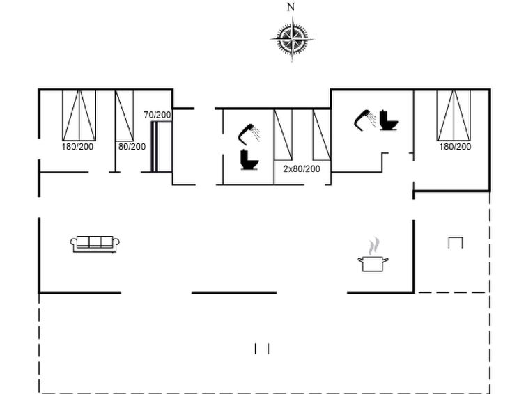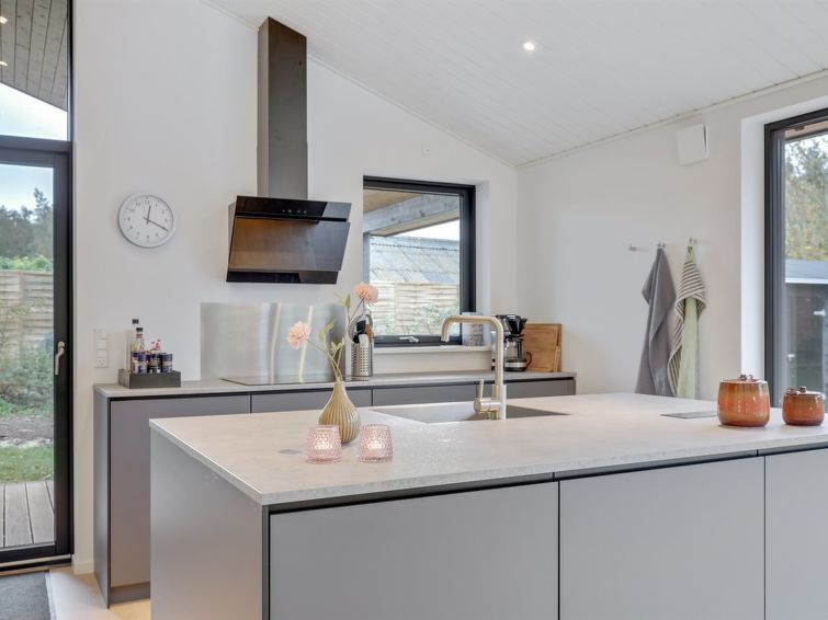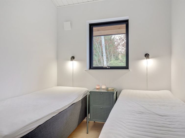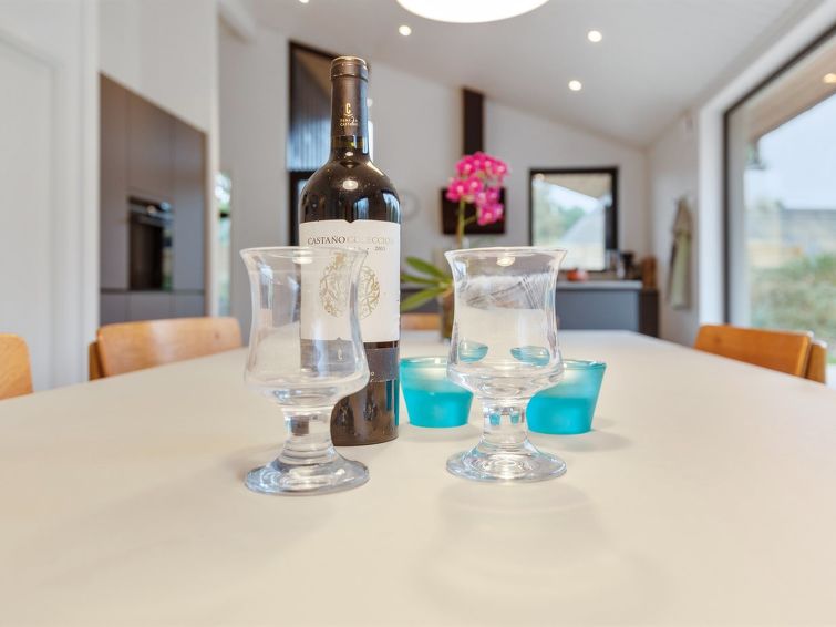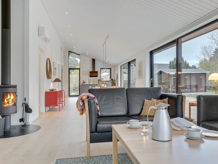 Enmannsbolig, bygget i 2020. 800 m fra sjøen. Privat: uberørt tomt 1'400 m2. Terrasse (80 m2), grill. I huset: vaskemaskin, tørketrommel. Parkering ved hbrukt. El-ladestasjon. Daglivarehandel 3 km. Golfbane 10 km. Eieren godtar ikke noen ungdomsgrupper.