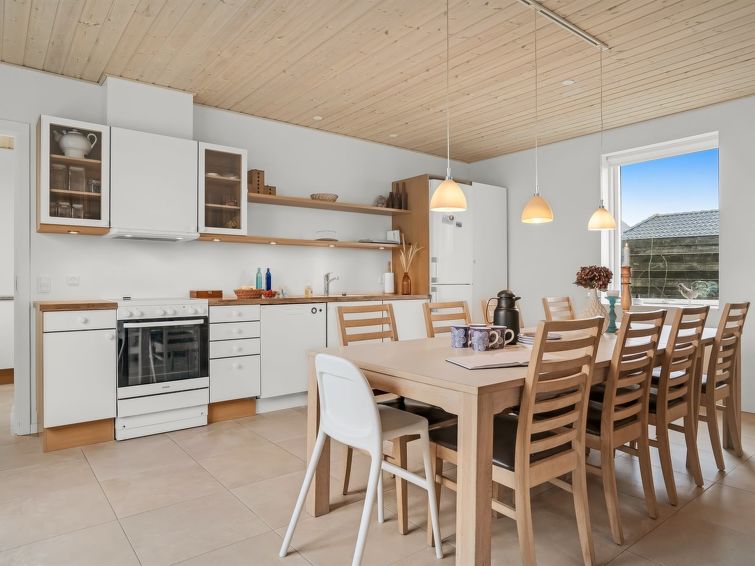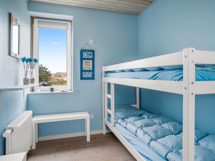 "Elmo" - 300m from the sea in NW Jutland", 5 rom hus 160 m2. Passer for 10 voksne. Stue med, TV, radio, CD-spiller og DVD. 1 rom med, 1 dobbeltseng. 1 rom med, 1 dobbeltseng. 1 rom med, 1 dobbeltseng. 1 rom med, 1 dobbeltseng. 1 rom med, 1 dobbeltseng. Kjøkken (stekeovn, oppvaskmaskin, 4 keramiske kokeplater, mikrobølgeovn, frys). 2 dusjer/WC. Terrasse 9 m2, dekt. Fasiliteter: høy barnestol barneseng (ekstra). Internett (trådløs LAN [WLAN]). Vennligst merk: røykfri bolig. Max kjæledyr / hund tillatt 1 kjæledyr / hund tillatt.