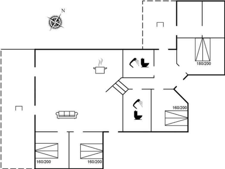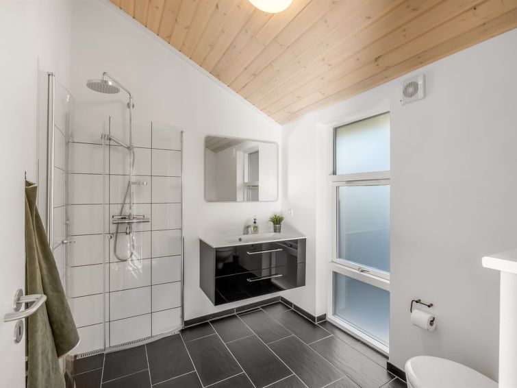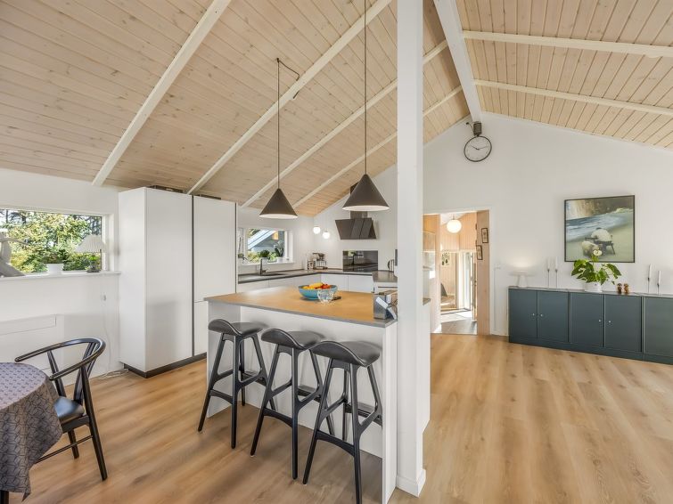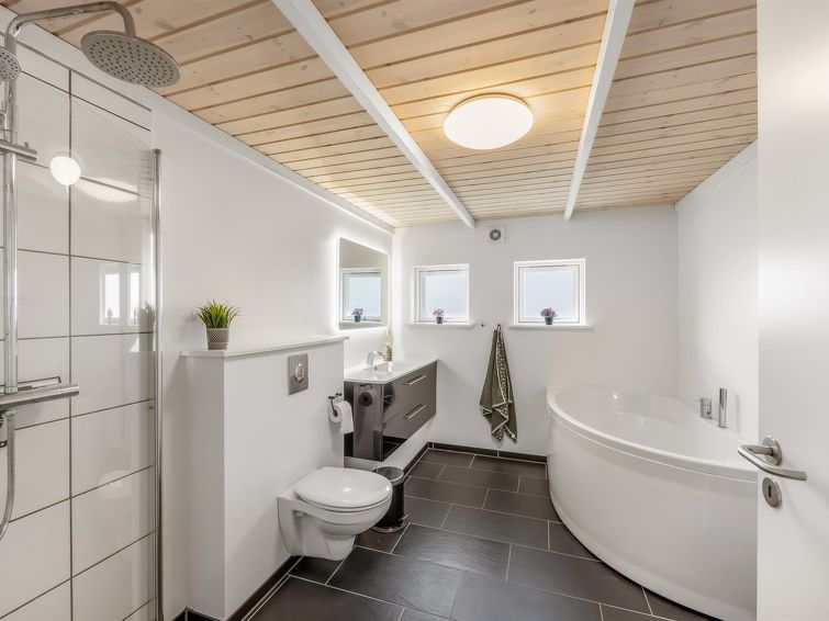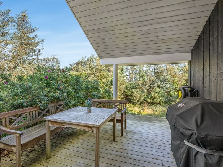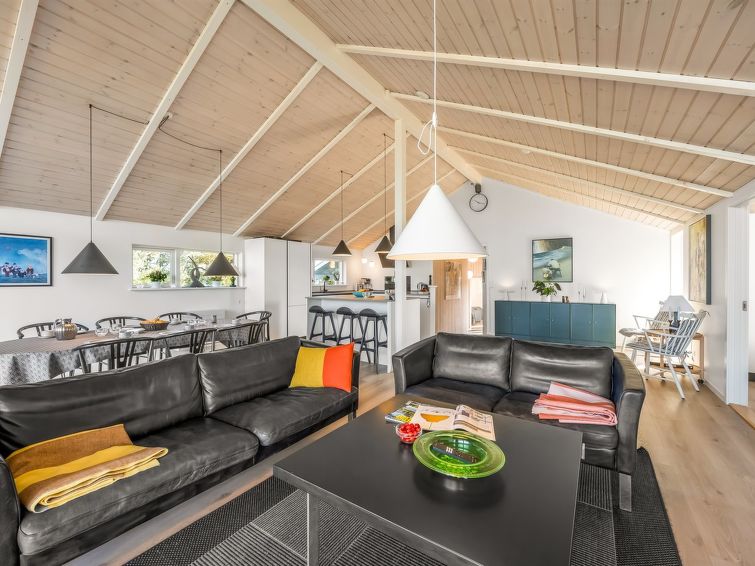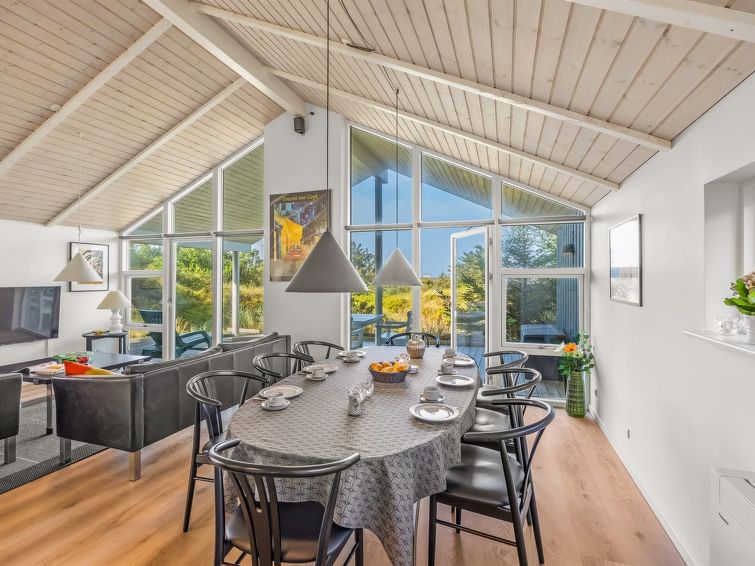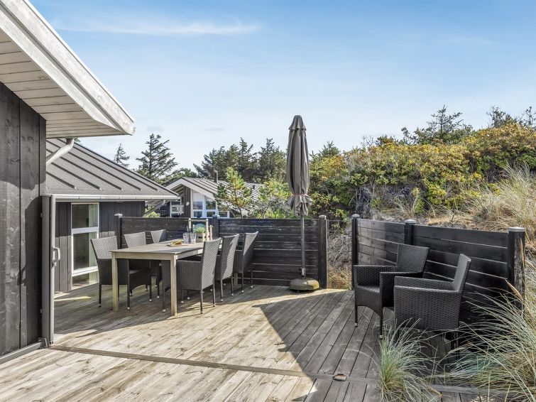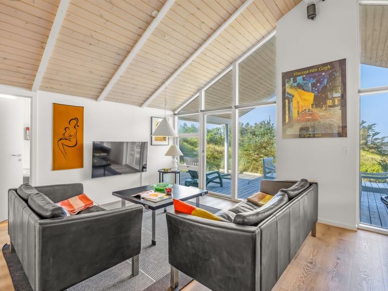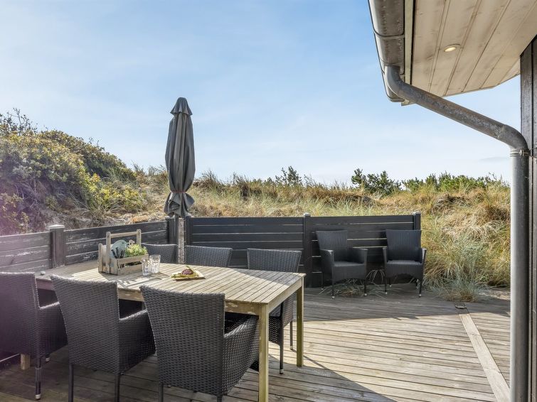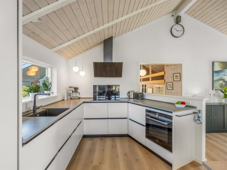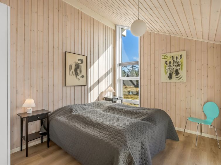 "Elna" - 400m from the sea in NW Jutland", 4 rom hus 141 m2. Passer for 8 voksne + 1 barn. Stue med, TV og radio. 1 rom med, 1 dobbeltseng. 1 rom med, 1 dobbeltseng. 1 rom med, 1 dobbeltseng. 1 rom med, 1 dobbeltseng. Kjøkken (stekeovn, oppvaskmaskin, 4 induksjonskomfyr, mikrobølgeovn, frys). 2 dusjer/WC. Utsikt av havet. Fasiliteter: høy barnestol barneseng (ekstra). Internett (trådløs LAN [WLAN]). Vennligst merk: røykfri bolig.