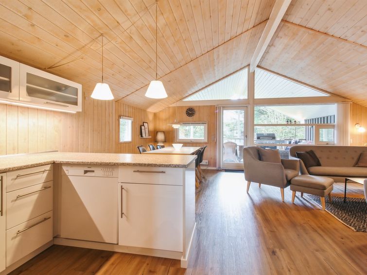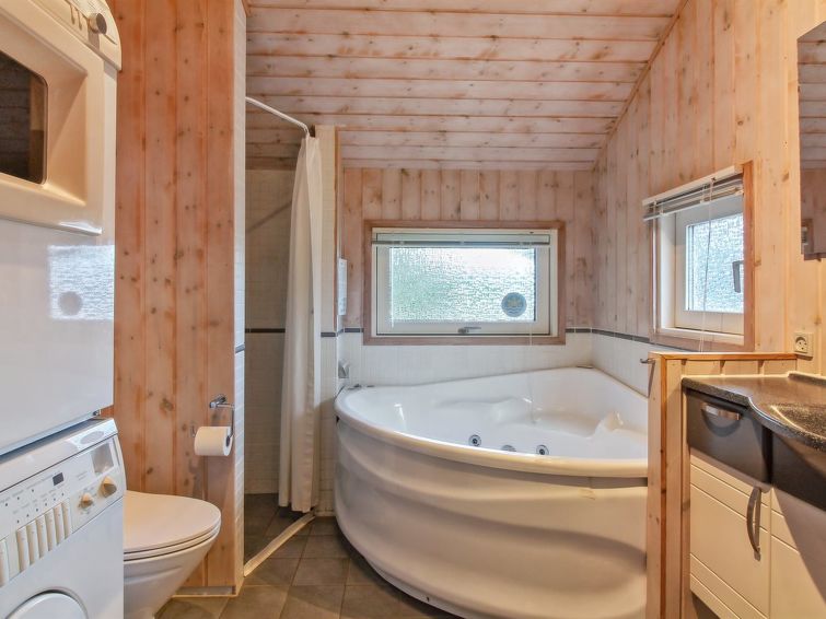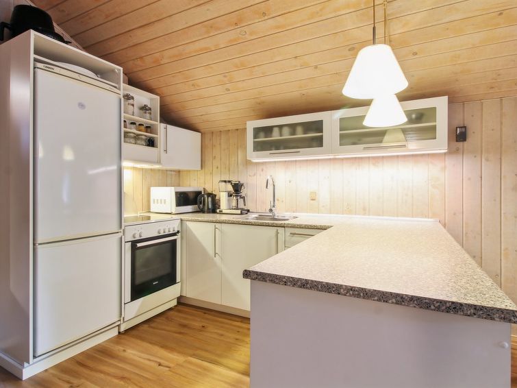 "Elsemaria" - 1.3km from the sea in NW Jutland", 3 rom hus 74 m2. Passer for 6 voksne. Stue med, TV, radio og CD-spiller. 1 rom med, 1 dobbeltseng. 1 rom med, 1 dobbeltseng. 1 rom med, 1 dobbeltseng. Kjøkken (stekeovn, oppvaskmaskin, 4 keramiske kokeplater, frys). Dusj/WC, boblebad. Terrasse 20 m2, dekt. Fasiliteter: Internett (trådløs LAN [WLAN]). Vennligst merk: røykfri bolig.
