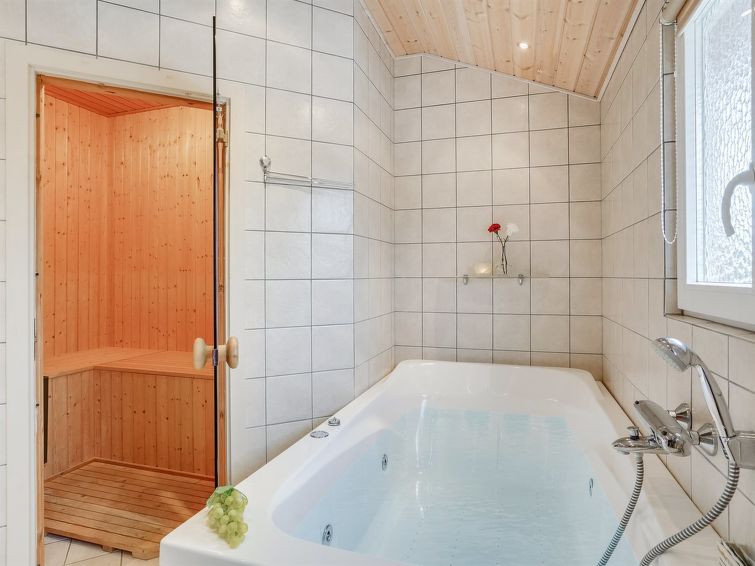 "Elsemarie" - 1.4km to the inlet in Western Jutland", 5 rom hus 114 m2. Passer for 8 voksne + 1 barn. Stue med, TV, CD-spiller, stereoanlegg og DVD. 1 rom med, 1 dobbeltseng. 1 rom med, 1 dobbeltseng. 1 rom med, 1 dobbeltseng. Kjøkken (stekeovn, oppvaskmaskin, 4 keramiske kokeplater, mikrobølgeovn, frys). Dusj/WC, boblebad. Terrasse 8 m2, dekt. Fasiliteter: høy barnestol. Internett (trådløs LAN [WLAN]). Vennligst merk: røykfri bolig. Max kjæledyr/små hunder tillatt 2 kjæledyr/små hunder tillatt.