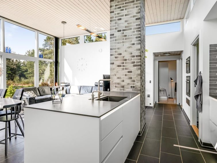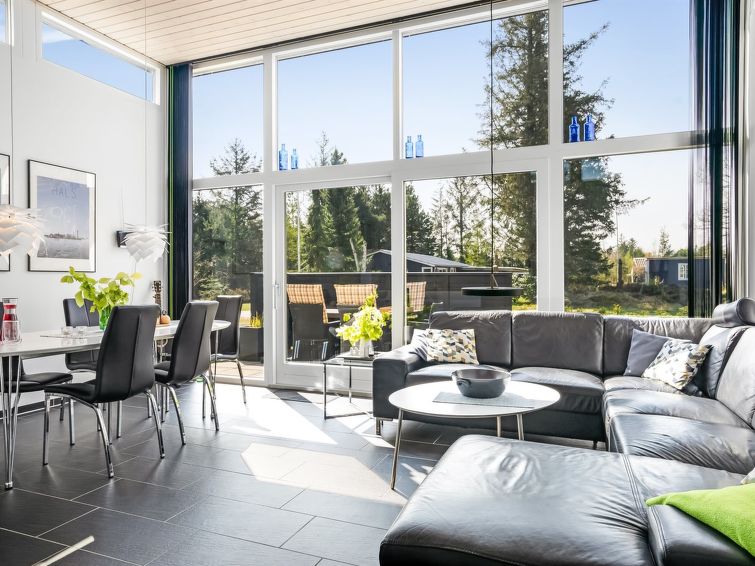 "Elviira" - 350m from the sea in NE Jutland", 4 rom hus 110 m2. Passer for 8 voksne + 1 barn. Stue med, TV og DVD. 1 rom med, 1 dobbeltseng. 1 rom med, 1 dobbeltseng. 1 rom med 2 senger. 1 rom med 2 senger. Kjøkken (stekeovn, oppvaskmaskin, 4 keramiske kokeplater, mikrobølgeovn, frys). 2 dusjer/WC, boblebad. Terrasse 16 m2, dekt. Fasiliteter: høy barnestol barneseng (ekstra). Internett (trådløs LAN [WLAN]). Vennligst merk: røykfri bolig.