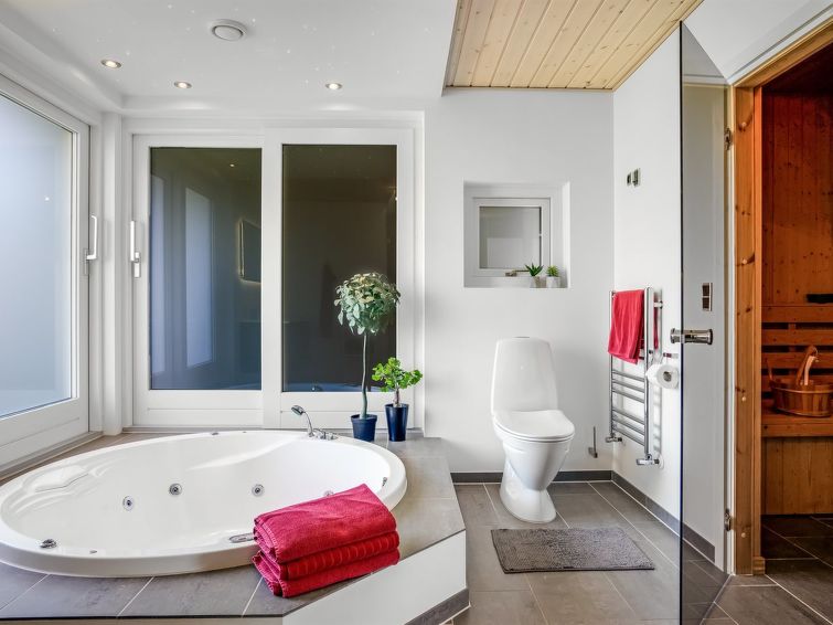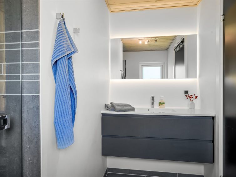Enmannsbolig, bygget i 2013. 350 m fra sjøen. Privat: uberørt tomt 975 m2. Terrasse (25 m2), grill, lekeplass (rutsjebane, huske). I huset: badstu, vaskemaskin, tørketrommel. Parkering ved hbrukt. Daglivarehandel 4.5 km. Eieren godtar ikke noen ungdomsgrupper.