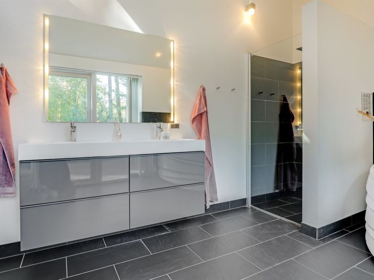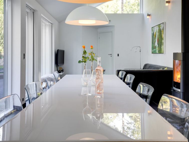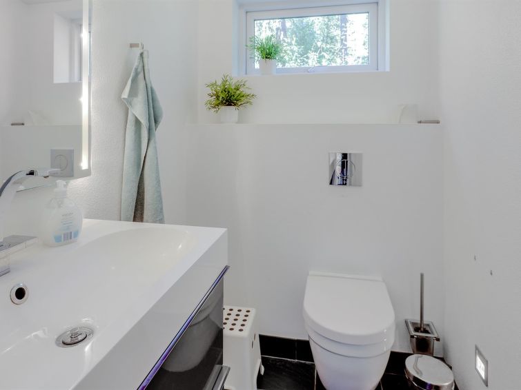 Enmannsbolig, bygget i 2010. 800 m fra sjøen. Privat: uberørt tomt 2'543 m2. Terrasse (70 m2), lekeplass (huske). I huset: vaskemaskin, tørketrommel. Parkering ved hbrukt. Bilporten. Daglivarehandel 3 km. Golfbane 3.5 km. Eieren godtar ikke noen ungdomsgrupper.