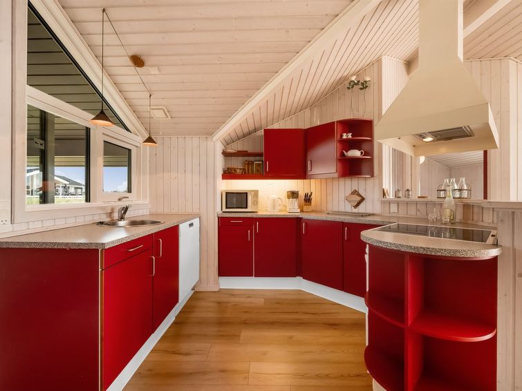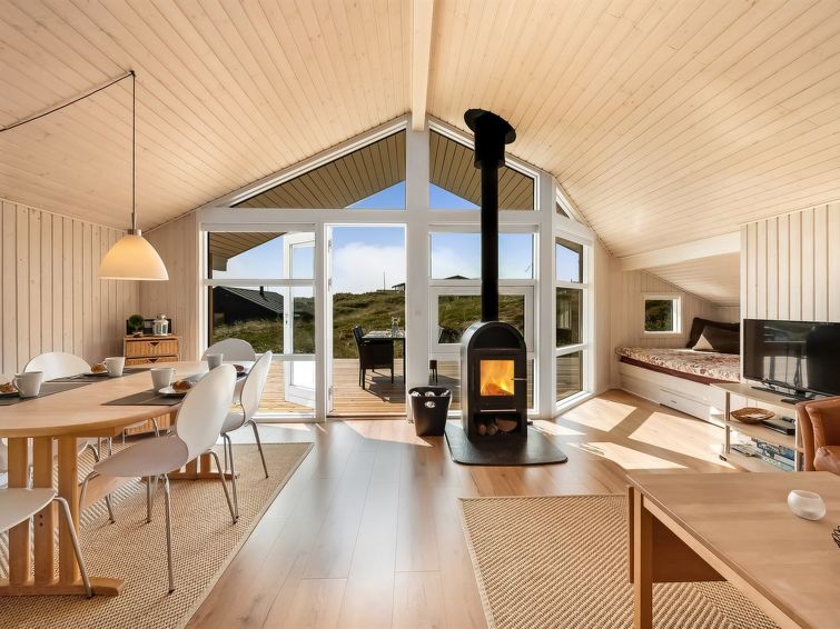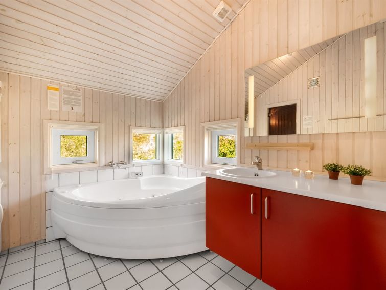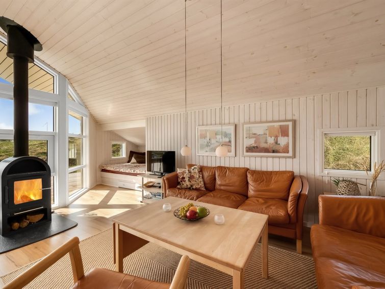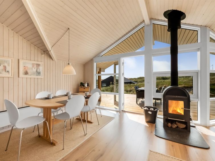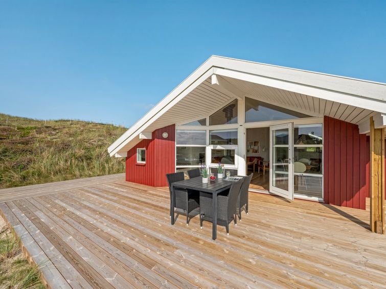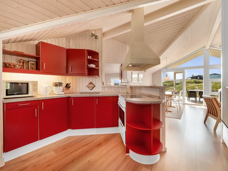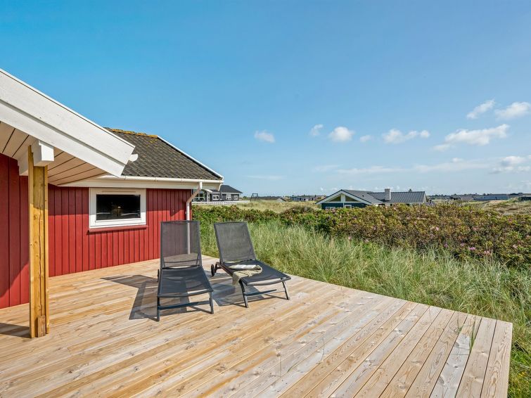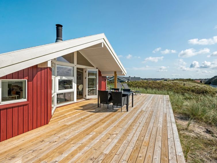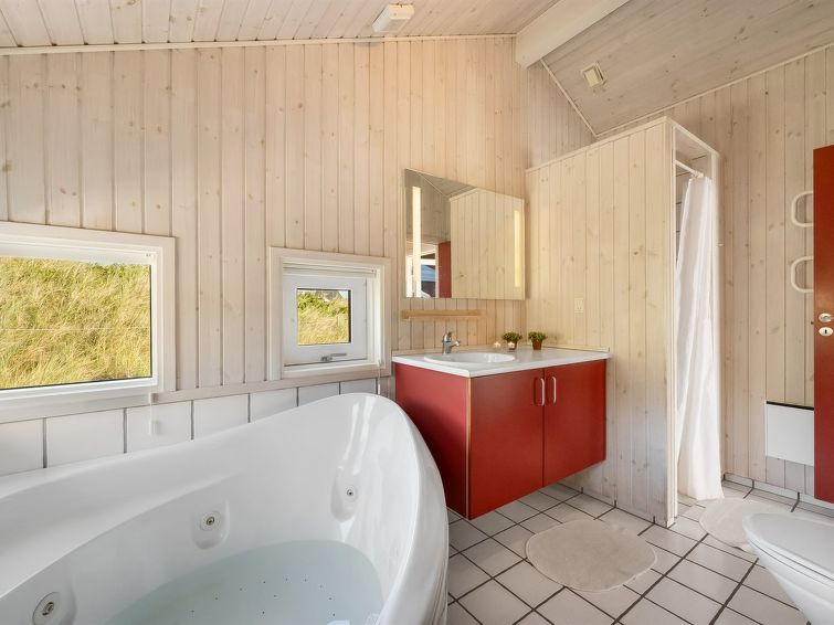 "Emelie" - 200m from the sea in Western Jutland", 3 rom hus 87 m2. Passer for 4 voksne. Stue med, TV, CD-spiller og stereoanlegg. 1 rom med, 1 dobbeltseng. 1 rom med 2 senger. 1 rom med, 1 dobbeltseng. Kjøkken (stekeovn, oppvaskmaskin, 4 keramiske kokeplater, mikrobølgeovn, frys). Dusj/WC, boblebad. Terrasse 8 m2, dekt. Fasiliteter: Internett (trådløs LAN [WLAN]). Vennligst merk: røykfri bolig.