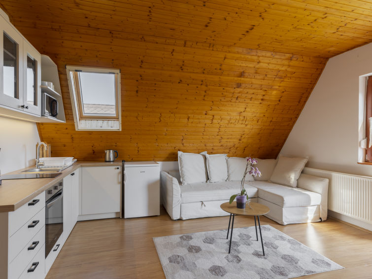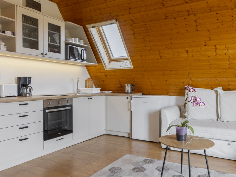 "Emi (BAC110)", 2 rom leilighet 50 m2, i øvre etasje. Delvis, med skråtak, renovert i 2023, praktiskt møbler: øverste etasje: (utendørs trapp). 1 dobblet rom med skråtak. Utgang til balkongen. Åpen spisestue. Kjøkken/stue (2 keramiske kokeplater, brødrister, vannkoker, mikrobølgeovn, elektrisk kaffemaskin) med, 1 dobbel sovesoffa, kabel-TV og internasjonale TVkanaler (flatskjerms TV). Dusj/WC. Balkong. Terrassemøbler, grill (flyttbar), liggestoler (2). Fasiliteter: Internett (trådløs LAN [WLAN], gratis). Vennligst merk: røykfritt hus. MA19010903
