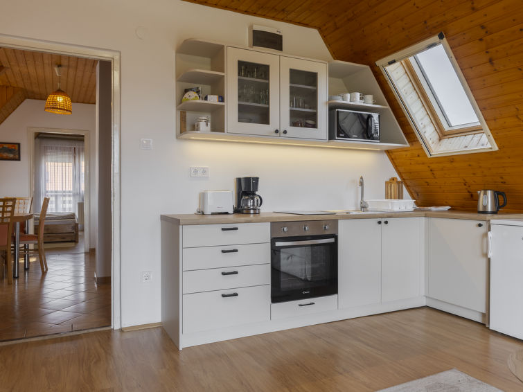 Badacsonytomaj 25 km fra Keszthely: Komfortabel tomannsbolig "Emi", med 2 etasjer. I området Badacsonytomaj 2 km fra sentrum av Badacsony, 8 km fra sentrum av Tapolca, i en solrikt posisjon i et boligområde, 1 km fra innsjø. Privat: tomt 500 m2. I huset: trådløst LAN [WLAN], sentralvarme, airconditioning. Parkering (for 2 biler) på tomten. Butikk 400 m, supermarked 8 km, strand med gress 1 km.