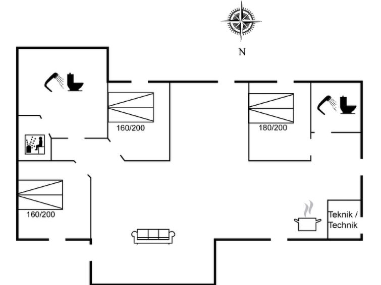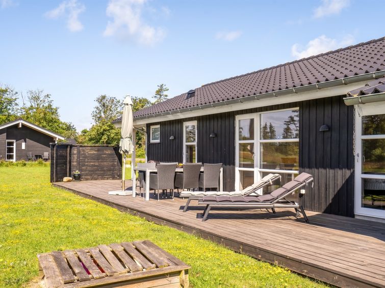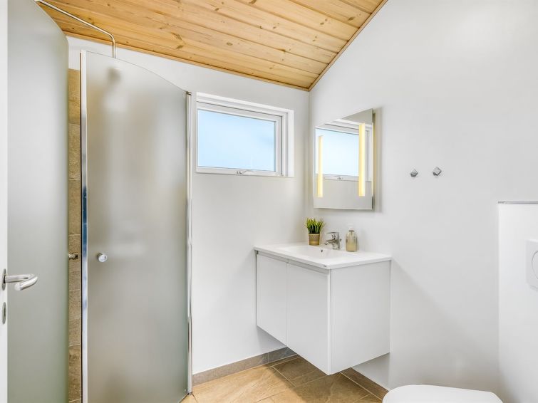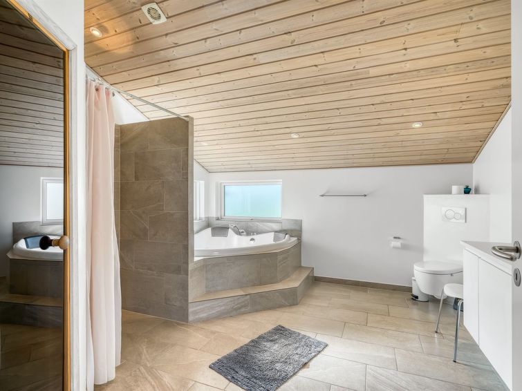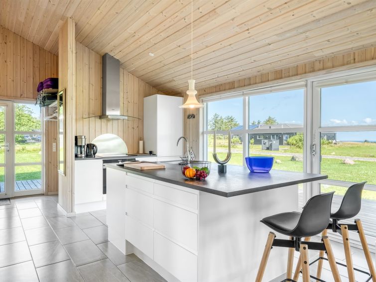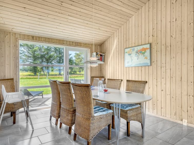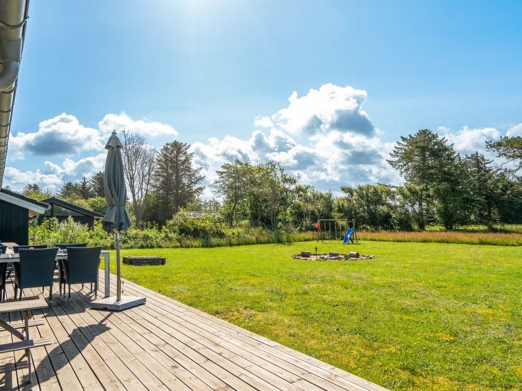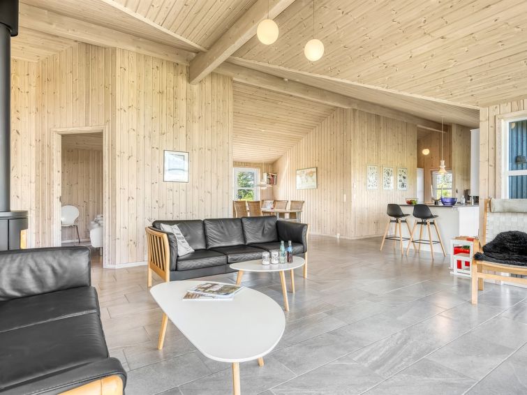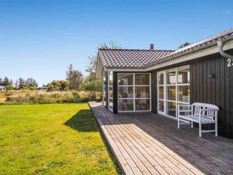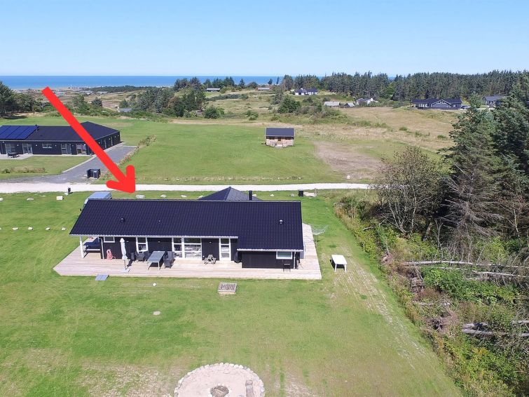 "Engelina" - 950m from the sea in NW Jutland", 3 rom hus 123 m2. Passer for 7 voksne + 2 barn. Stue med, TV, radio, CD-spiller, stereoanlegg og DVD. 1 rom med, 1 dobbeltseng. 1 rom med, 1 dobbeltseng. Åpen galleri, 1 rom med, 1 dobbeltseng og 2 sovemuligheter. Kjøkken (stekeovn, oppvaskmaskin, 4 keramiske kokeplater, mikrobølgeovn, frys). 2 dusjer/WC. Terrasse 16 m2, dekt. Utsikt av havet. Fasiliteter: høy barnestol barneseng (ekstra). Internett (trådløs LAN [WLAN]). Vennligst merk: røykfri bolig.