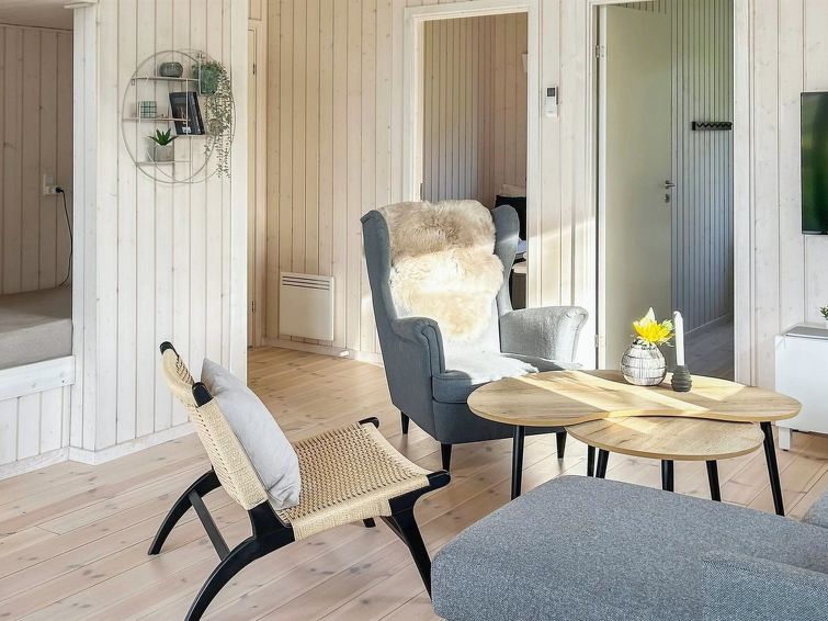 Enmannsbolig, bygget i 2022. 800 m fra sjøen. Privat: uberørt tomt 1'201 m2. Utendørs dusj, grill. I huset: vaskemaskin. Parkering ved hbrukt. Daglivarehandel 3.5 km. Golfbane 10 km. Eieren godtar ikke noen ungdomsgrupper.