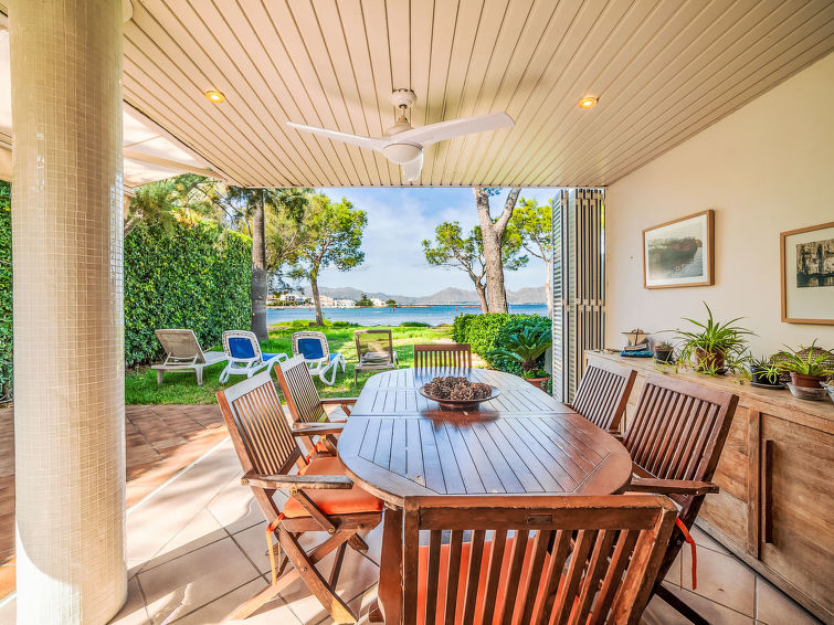 Barcarés 1 km fra Alcudia: Meget fin, koselig dobbelthus "Es clot", med 2 etasjer, rekkehus. I området Es Barcarés, i en solrikt posisjon boligområde, 2 km fra skogskanten, 5 m fra sjøen, 100 m fra stranden, direkte tilgang til stranden. Privat: hage (uten gjerde) med plen. Utendørs dusj, sitteplass, pergola, hagemøbler, grill. I huset: trådløst LAN [WLAN], sykkelrom, airconditioning, vaskemaskin. Parkering ved hbrukt på tomten. Butikk 1.5 km, daglivarehandel 1.5 km, supermarked 300 m, restaurant, bar 50 m, bakeri 1.5 km, sykkelutleie 1 km, ølservering 50 m.minutters gange til sentrum 15, bussholdeplass 1 km, sandstrand "Es Morer Vermell" 300 m, strand ved klipper 5 m. Sporthavn 200 m, marina 3 km, golfbane(18 hull) 5.3 km, tennis 3 km, rideskole 3.5 km. Vennligst merk: velegnet for barnefamilier, passer for eldre. Passer for 8 voksne grupper med tenåringer- bare ved forespørsel. Av- og pålastning av bagasje er mulig ved feriebol. Flyplass 62 km av hbrukt.