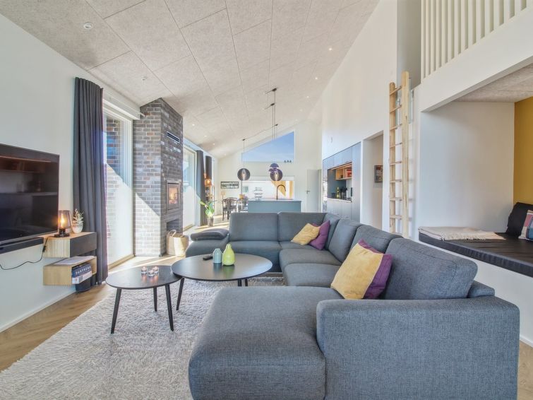 "Esme" - 400m from the sea in NW Jutland", 6 rom hus 175 m2. Passer for 12 voksne + 1 barn. Stue med, TV. 1 rom med, 2 sovesoffaer. 1 rom med, 1 dobbeltseng. 1 rom med, 1 dobbeltseng. Studio 1 rom med med, 1 dobbeltseng. Kjøkken (stekeovn, oppvaskmaskin, 4 induksjonskomfyr, mikrobølgeovn, frys). 3 dusjer/WC. Fasiliteter: høy barnestol barneseng (ekstra). Internett (trådløs LAN [WLAN]). Vennligst merk: røykfri bolig.