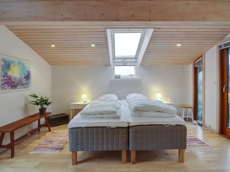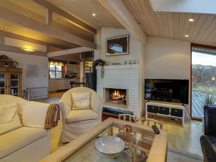 "Essie" - 250m from the sea in NW Jutland", 3 rom hus 86 m2. Passer for 6 voksne + 1 barn. Stue med, TV. 1 rom med, 1 dobbeltseng. 1 rom med, 1 dobbeltseng. 1 rom med, 1 x 2 køysenger. Kjøkken (stekeovn, oppvaskmaskin, 4 keramiske kokeplater, mikrobølgeovn, frys). Dusj/WC. Fasiliteter: høy barnestol barneseng (ekstra). Internett (trådløs LAN [WLAN]). Vennligst merk: røykfri bolig. Max kjæledyr / hund tillatt 1 kjæledyr / hund tillatt.