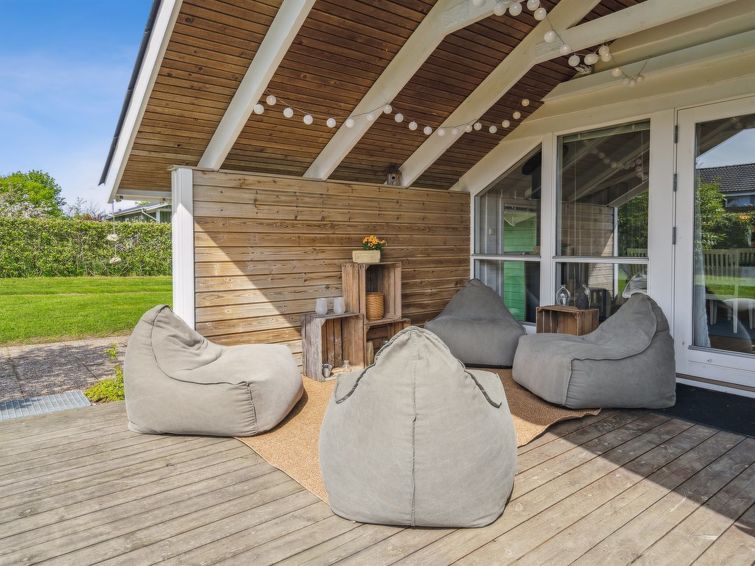 Enmannsbolig, bygget i 1996. 500 m fra sjøen. Privat: uberørt tomt 800 m2. Grill, lekeplass. I huset: vaskemaskin, tørketrommel. Parkering ved hbrukt. Daglivarehandel 3 km. Golfbane 14 km. Eieren godtar ikke noen ungdomsgrupper.