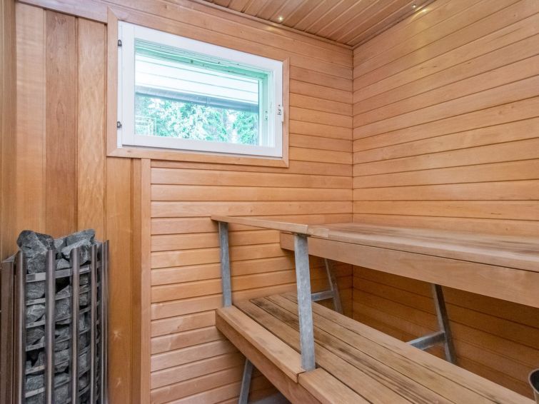 In summer use separate sauna on the cottage yard (it is not a lakeside sauna) with wood fired stove, dressing room with sleeping sofa for two persons, (no shower). Water has to be carried from the main cottage (there is a faucet on the main cottage's outer wall for that), electricity.