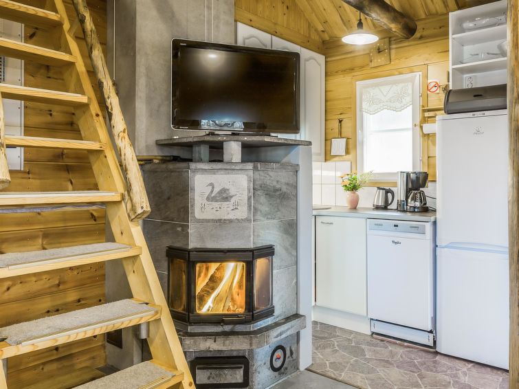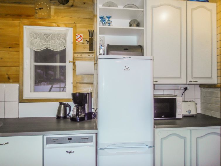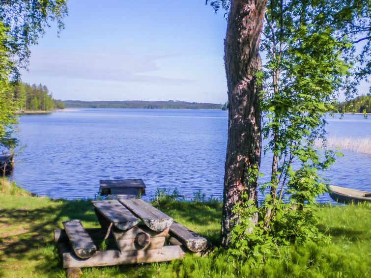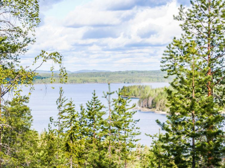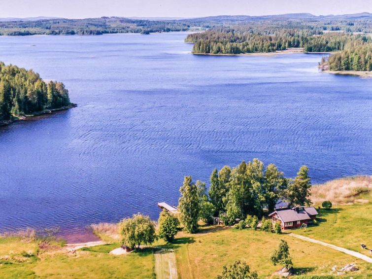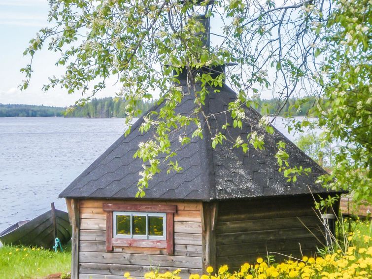 12 km south-east of Nurmes. Lake Pielinen 15 m, shallow water, firm sandy bottom. Own boat. Wooden cabin 1995, living room/kitchen, bedroom with double bed, sleeping loft with 2 beds, dressing room, washroom, sauna (electric sauna stove), open veranda, glassed-in porch. Kitchen is renovated 2016. Pet fee 30 € / pet / holiday. If you have a pet with you, please book additional service "Pet fee". Baby cot and high chair available on request (free of charge). Nearest neighbour is owner's boat pier 30 meters, owner's farm 100 meters.