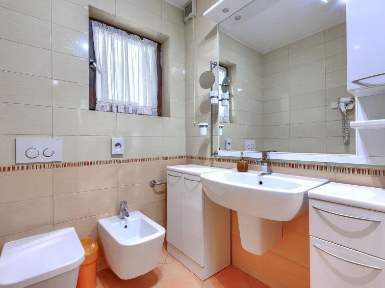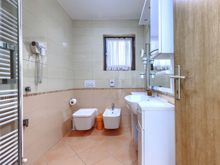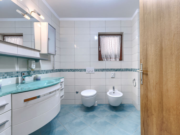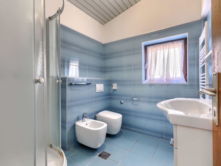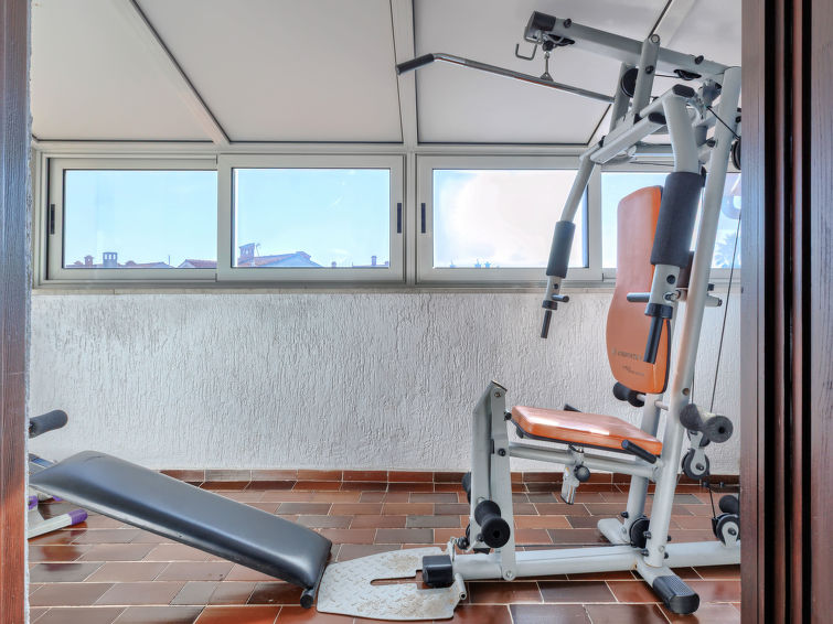 9 rom rekkehus 300 m2 på 3 etasjer. Stue med, satelit-TV (flatskjerms TV), DVD. Utgang til terrassen. Stue med, åpen peis. Utgang til terrassen. Spisestue. Kjøkken (4 kokeplater, stekeovn, oppvaskmaskin, mikrobølgeovn, frys) med, spisebord. Dusj/WC. Airconditioning. øverste etasje: 1 rom med 2 senger (80 cm lengde 200 cm). 1 rom med, 1 dobbeltseng (160 cm, lengde 200 cm). Utgang til balkongen. 1 rom med, 1 dobbeltseng (2 x 80 cm, lengde 200 cm). 1 rom med, 1 dobbeltseng (160 cm, lengde 200 cm). Utgang til terrassen. 2 dusjer/bidéer/WC. Airconditioning. Toppetasje: stue, med skråtak Lav dørhøyde 160 cm 250 cm med, 1 dobbel sovesoffa og satelit-TV (flatskjerms TV). Utgang til verandraen. 1 rom Lav dørhøyde 160 cm 250 cm med 2 senger (80 cm lengde 200 cm). 1 rom Lav dørhøyde 160 cm 250 cm med, 1 dobbeltseng (2 x 80 cm, lengde 200 cm). Spisestue, Lav dørhøyde 160 cm 250 cm. Åpent kjøkken (4 kokeplater, stekeovn). Dusj/bidé/WC, sep. WC. Airconditioning. Balkong 7 m2, terrasse 16 m2, dekt, terrasse 10 m2, med tak. Terrassemøbler. Utsikt av svømmebassenget. Fasiliteter: Internett (trådløs LAN [WLAN], gratis).
