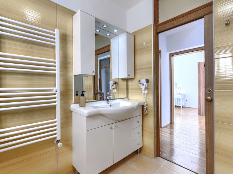 Rekkehus "Eufemia", med 3 etasjer. I området Veruda Porat 2 km fra sentrum av Pula, 400 m fra sjøen, 1 km fra stranden. Privat: tomt 450 m2 (inngjerdet), velholdt hage med blomster og trær, svømmebasseng kantete (24 m2, dybde 100- 140 cm dyp, Sesongåpent: 09.Mai. - 26.Sep.) med innebygde trapper. Utendørs dusj, grill, lekeplass (huske). I huset: internetilkobbling, vaskemaskin. Parkering ved hbrukt på tomten. Butikk 50 m, restaurant 70 m, bakeri 50 m, bussholdeplass 80 m, småstenstrand 1 km, offentlig badeområde 1 km. Marina 400 m, idrettsenter 1.5 km. Stille og rolig område. Stillhet og god oppførsel. Double depositum for ungdomsgrupper kreves ved ankomst.