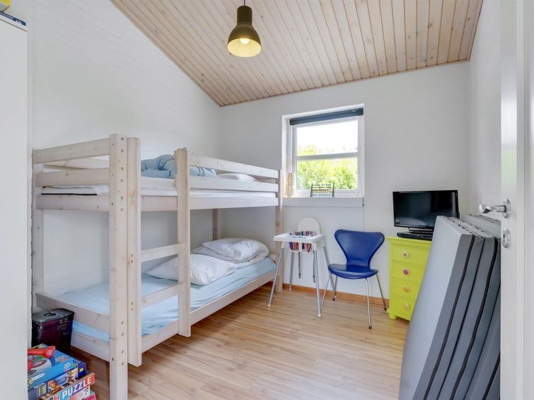 "Evangelia" - 1.2km from the sea in Lolland, Falster and Mon", 3 rom hus 84 m2. Passer for 4 voksne + 3 barn. Stue med, TV. 1 rom med, 1 dobbeltseng. 1 rom med 2 senger. 1 rom med, 1 x 2 køysenger. Kjøkken (stekeovn, oppvaskmaskin, 4 keramiske kokeplater, mikrobølgeovn, frys). Dusj/WC. Fasiliteter: høy barnestol. Internett (trådløs LAN [WLAN]). Vennligst merk: røykfri bolig.