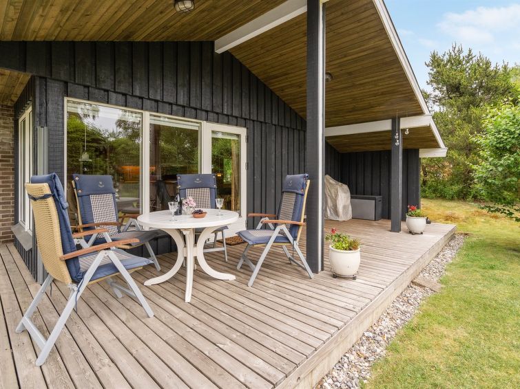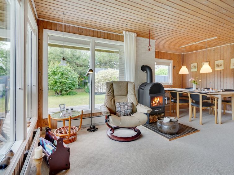 "Farthin" - 800m from the sea in NE Jutland", 3 rom hus 70 m2. Passer for 7 voksne + 1 barn. Stue med, TV. 1 rom med, 1 dobbeltseng. Studio 1 rom med med 3 senger. Kjøkken (stekeovn, oppvaskmaskin, 4 keramiske kokeplater, frys). Dusj/WC. Terrasse 21 m2, dekt. Fasiliteter: høy barnestol barneseng (ekstra). Internett (trådløs LAN [WLAN]). Vennligst merk: røykfri bolig.